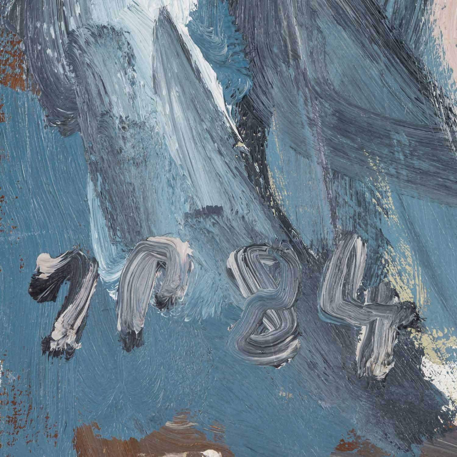 u.li. monogrammiert und datiert, verso bezeichnet und datiert, Öl/Leinwand, HxB: ca. 125x70 cm. Alters- und Beriebspuren, minim. Farbabplatzer.