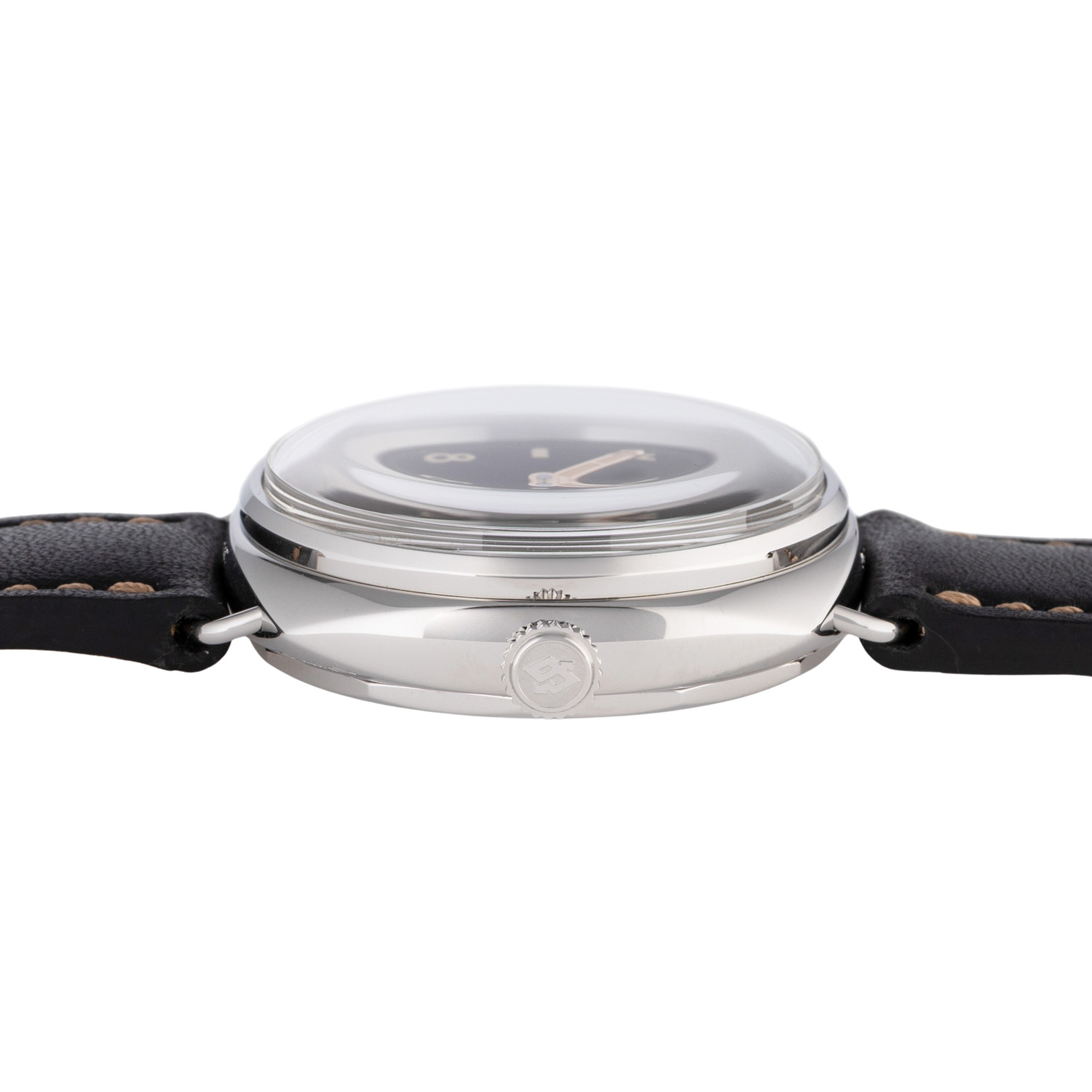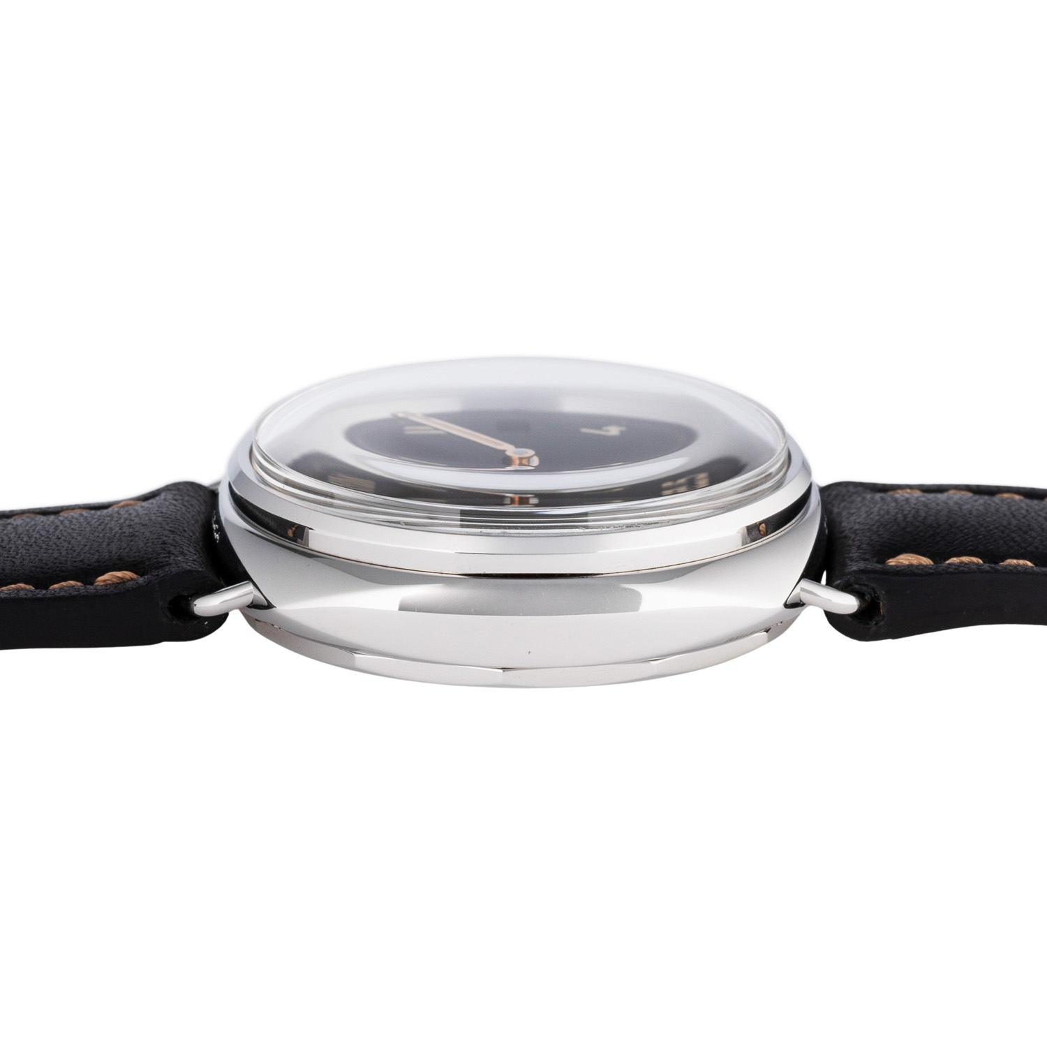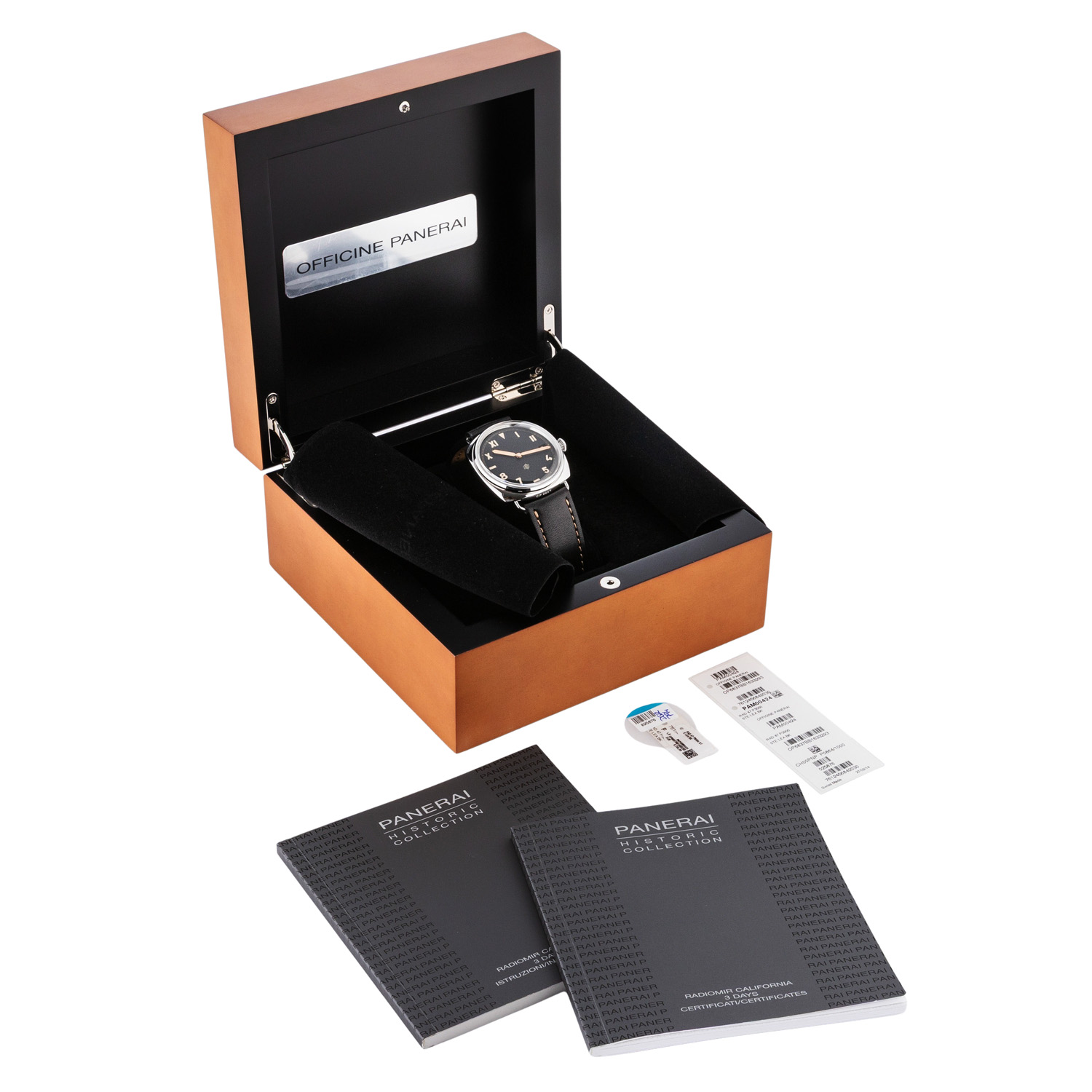 Edelstahl. Glasboden. Seriennummer BB1633293. Handaufzugswerk P.3000 mit sehr guten Gangwerten (+8 s/d. 318° Amplitude). Schwarzes Zifferblatt mit römischen und arabischen Ziffern, Eisenbahnminuterie und Datumsanzeige. Neues Lederband mit der Originalen Panerai Dornschließe aus Edelstahl. Guter Zustand mit leichten Tragespuren. Original Box, Anleitung, Etiketten mit Ref.Nr. und UVP und Garantieheft inkl. Garantiezertifikat anbei. Gekauft im März 2014 in der Panerai Boutique in München. Durchmesser ca. 47 mm (gemessen ohne Krone).