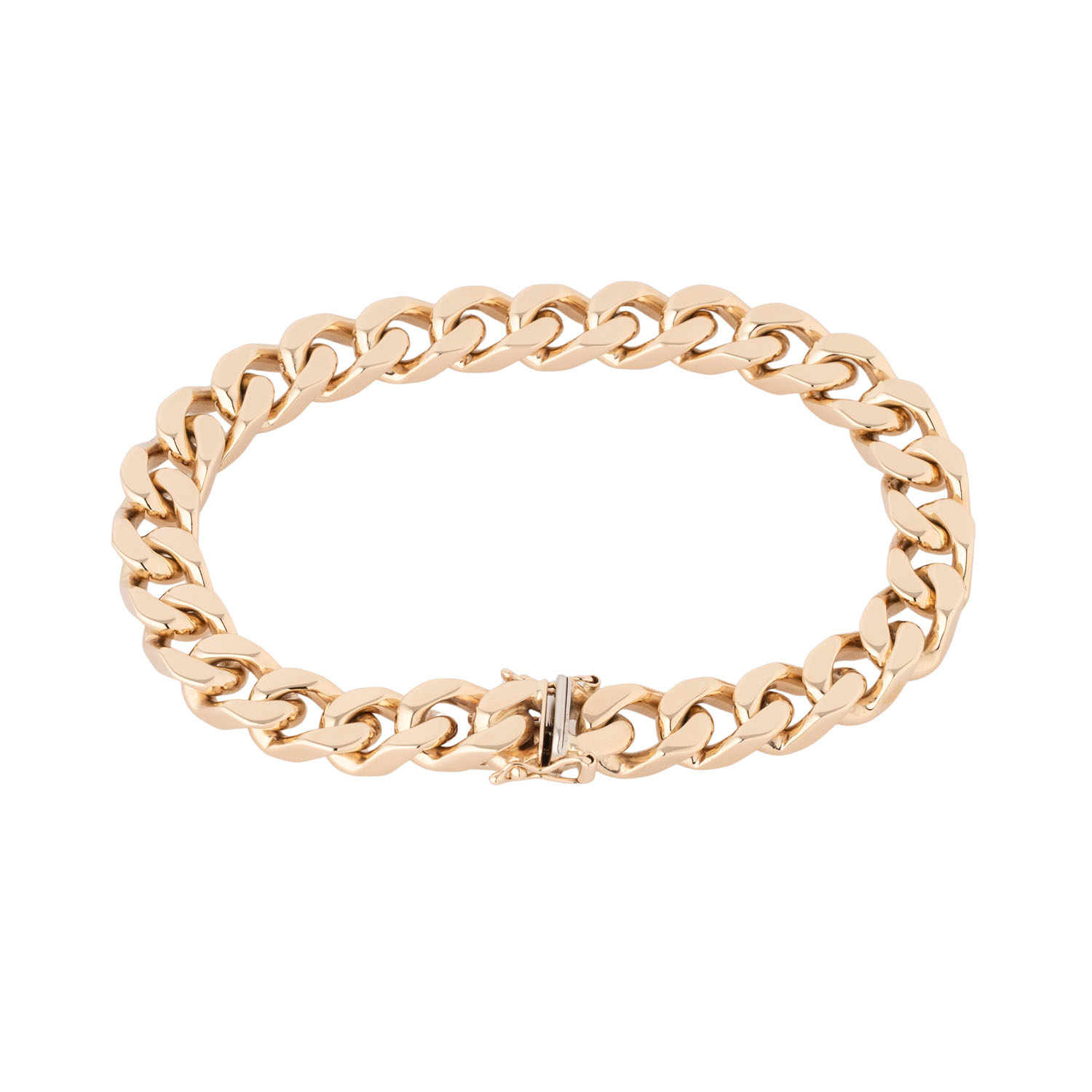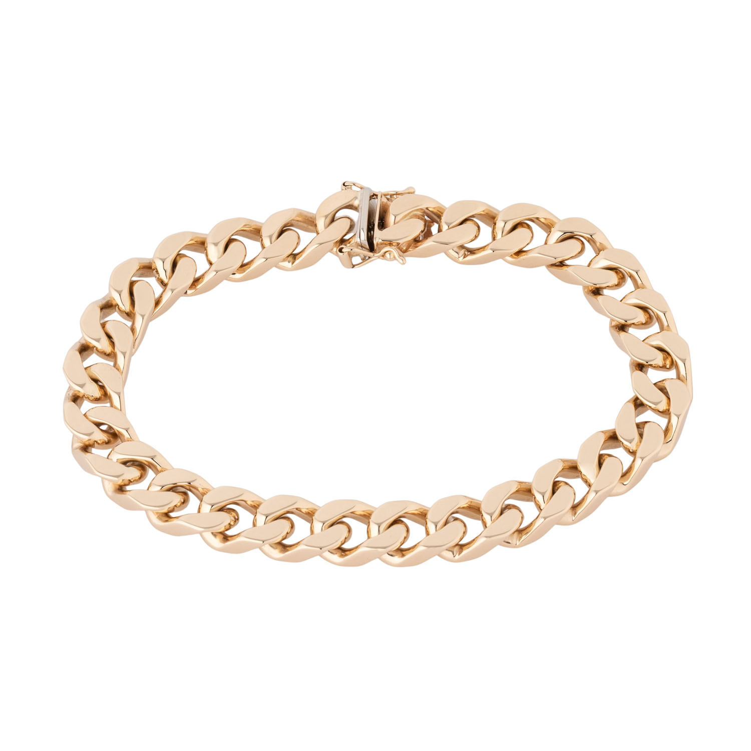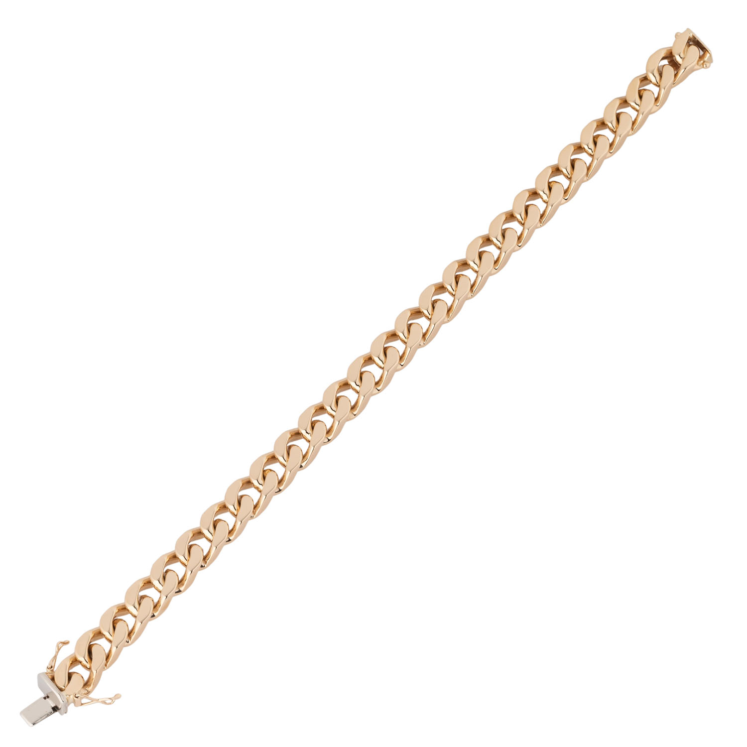 GG 14K, 54,3 g, L: ca. 20 cm, B: ca. 0,8 cm, 20./21. Jh, leichte Tragespuren, Kastenschloß mit 2 Sicherheitsachten.