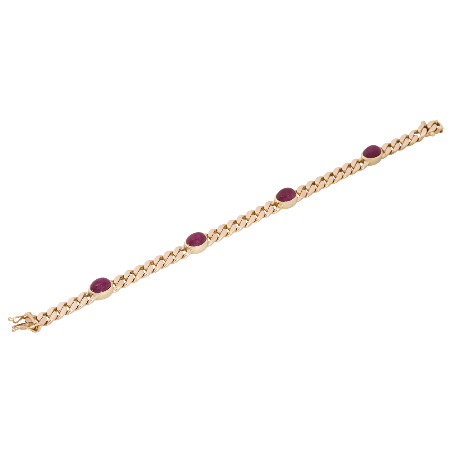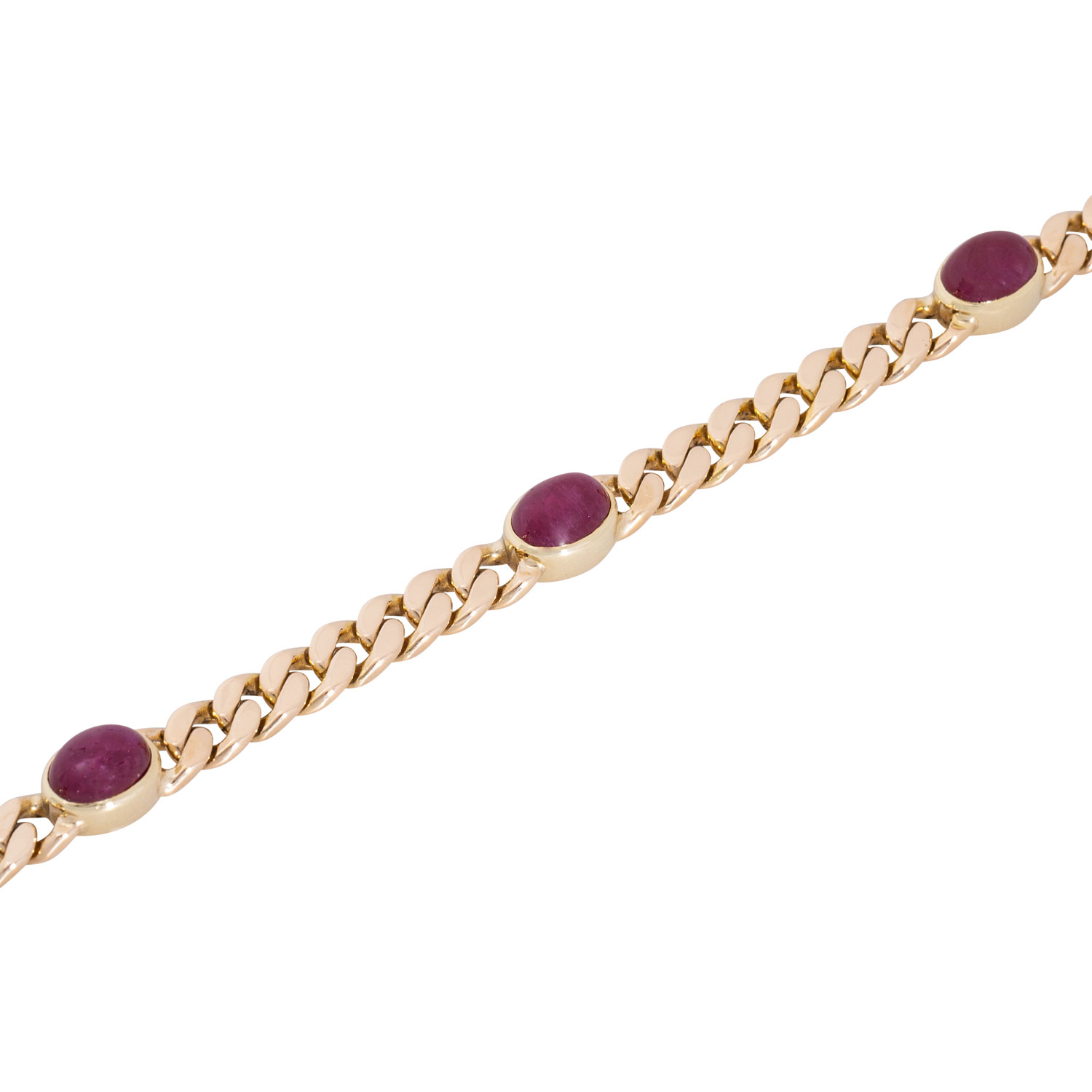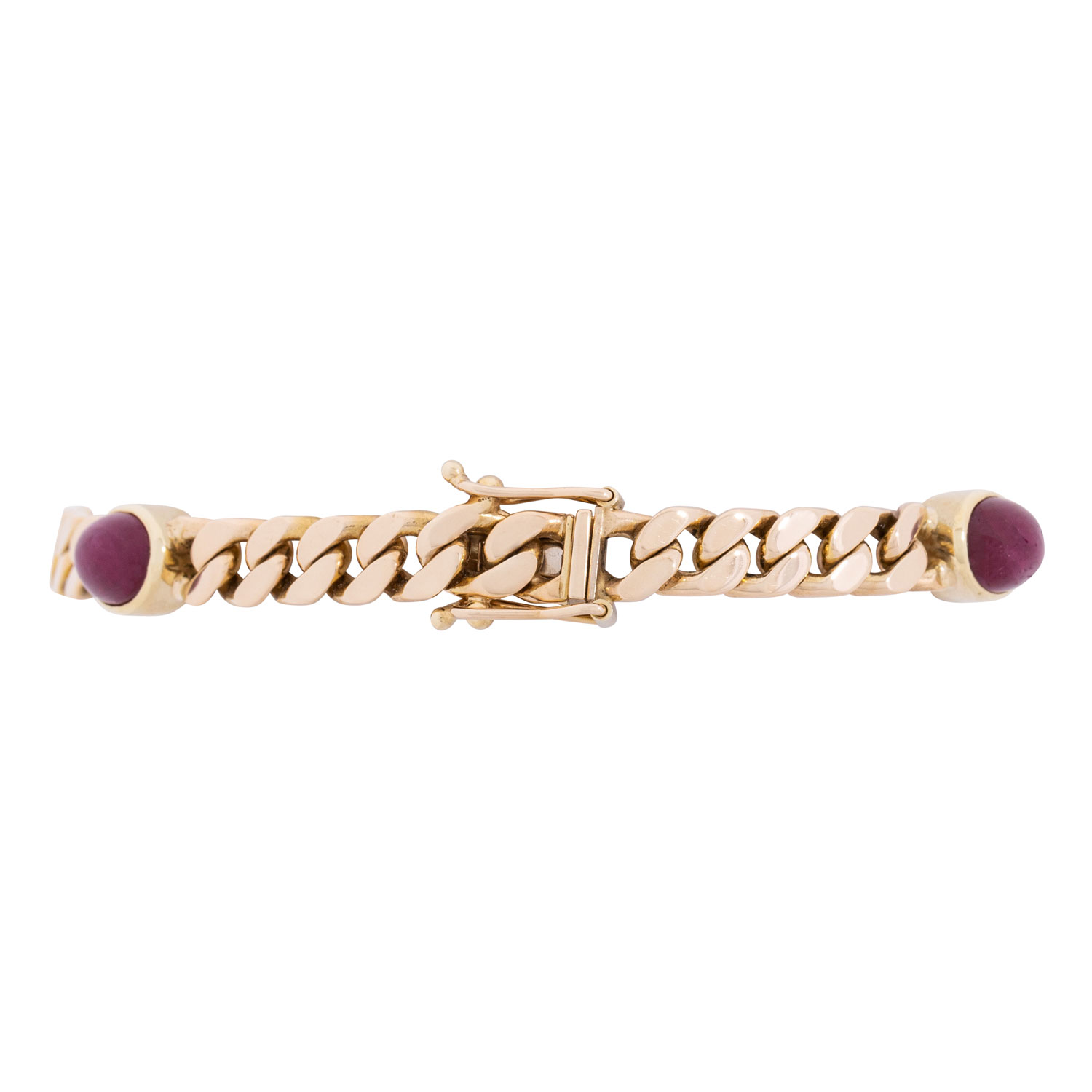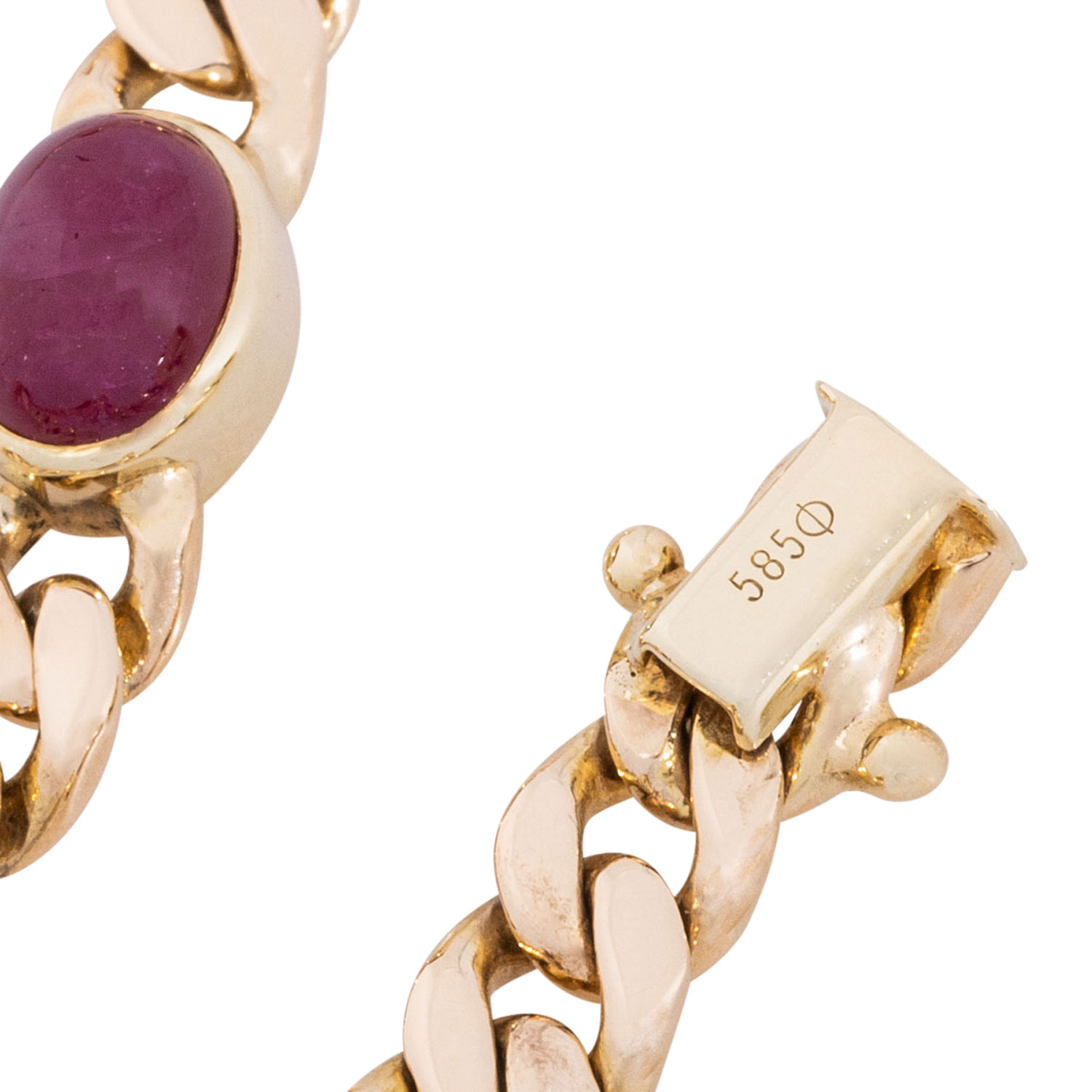 ovale Cabochons, ca. 8 x 6 mm, GG 14K, 20,7 g, L: 18,7 cm, B: 7,3 mm, Kastenschloß, 2 Sicherungsachten, Ende 20. Jh., minimale Tragespuren.