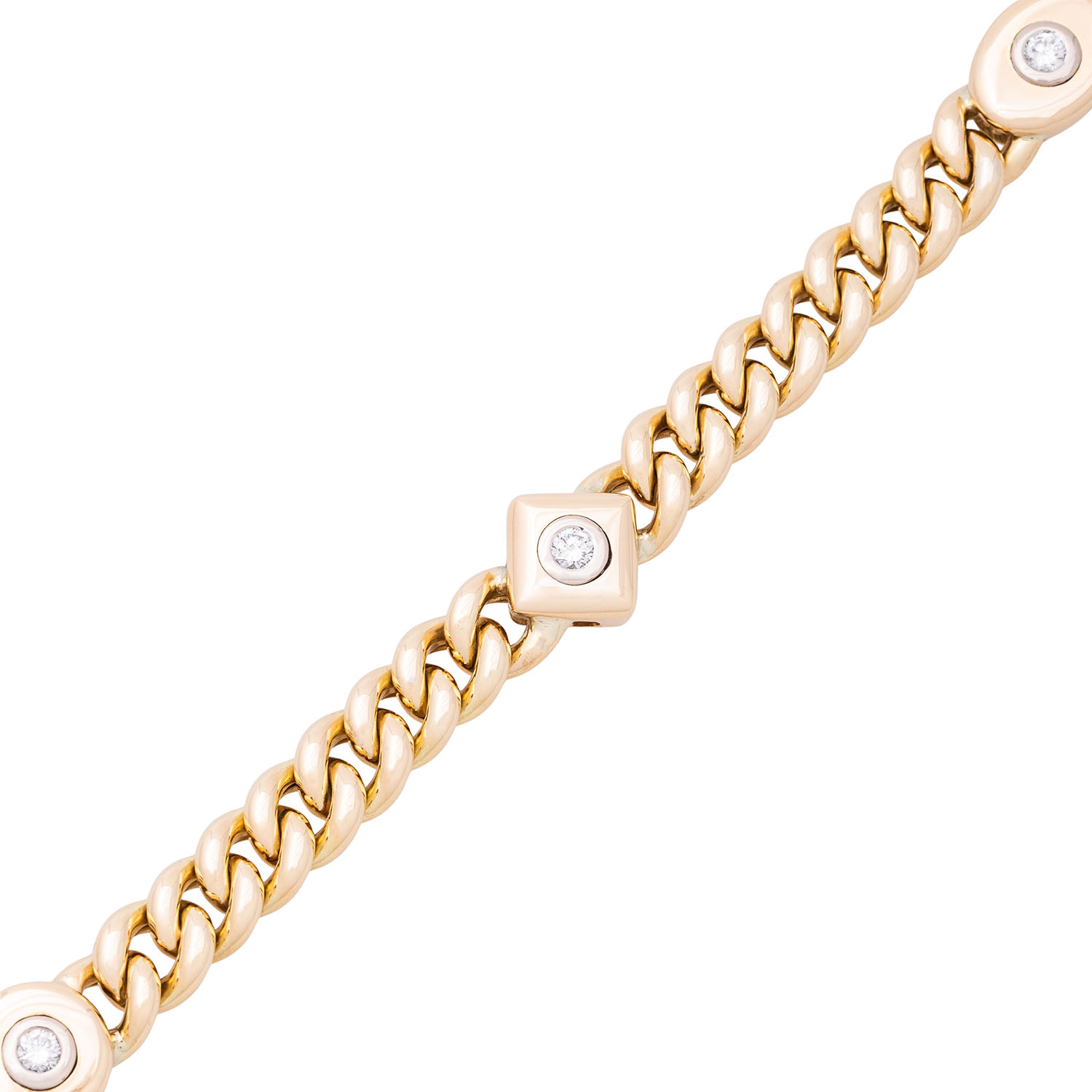 0,17 ct, punziert, zus. 0,51 ct, ca. WEISS (H)/VVS, GG 18K, 41,3 g, L: 19 cm, 3 geometrische Elemente in klassischem Rundpanzermuster, ca. 1980er Jahre, guter Erhalt, punziert 'KAST', solide Verarbeitung.
