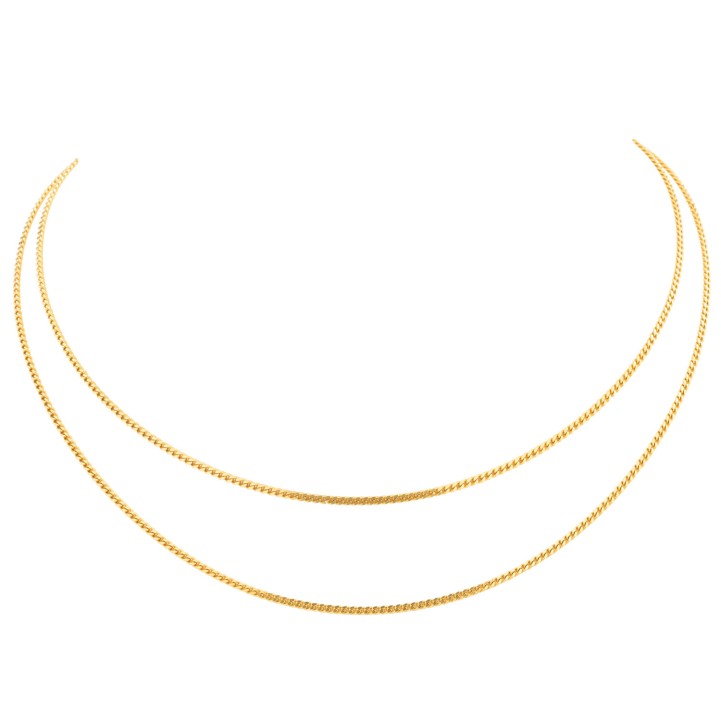 GG 14K, 5,5 g, L: 70 cm, B x H: 1,4 x 0,7 mm, Federring, 2. Hälfte 20. Jh., Tragespuren.