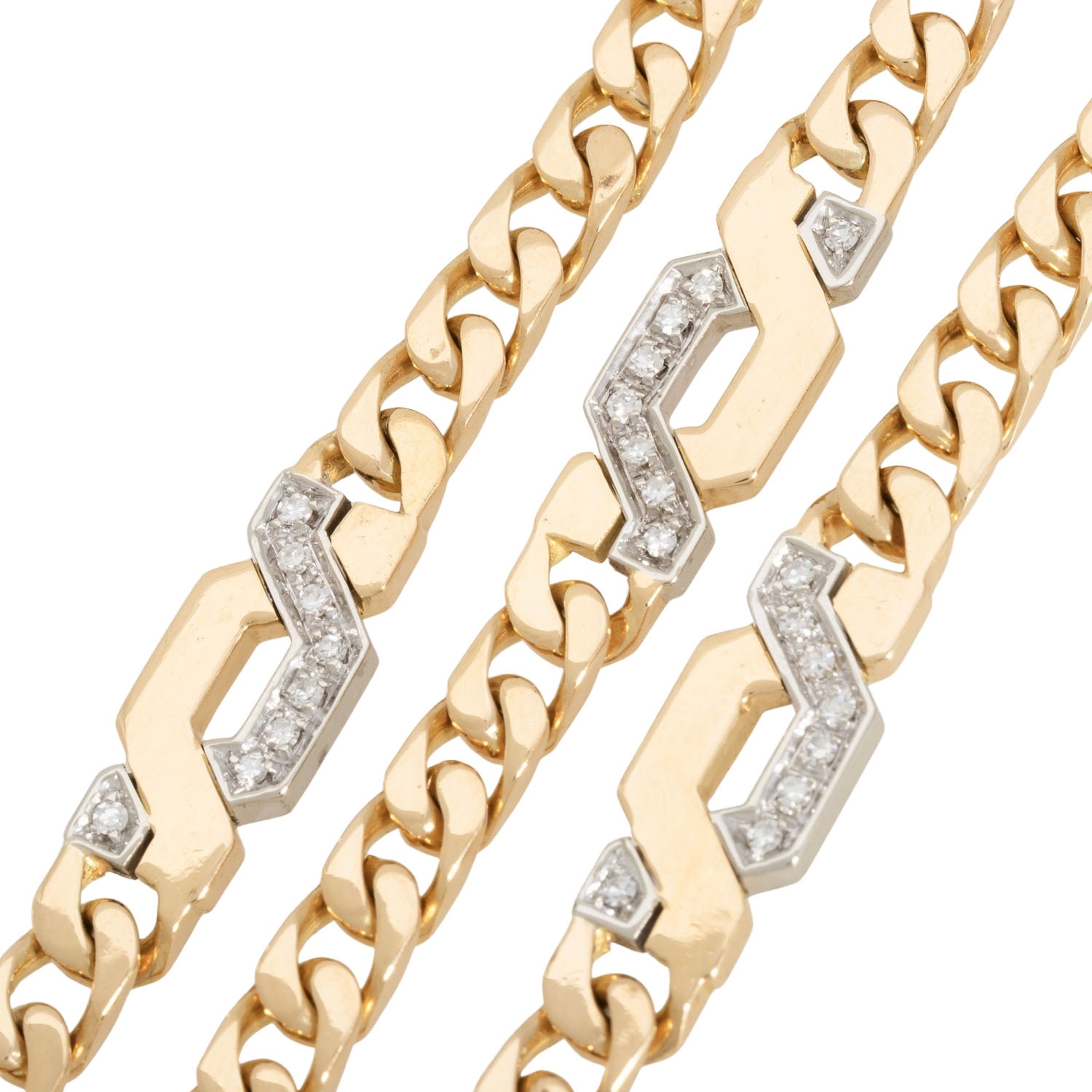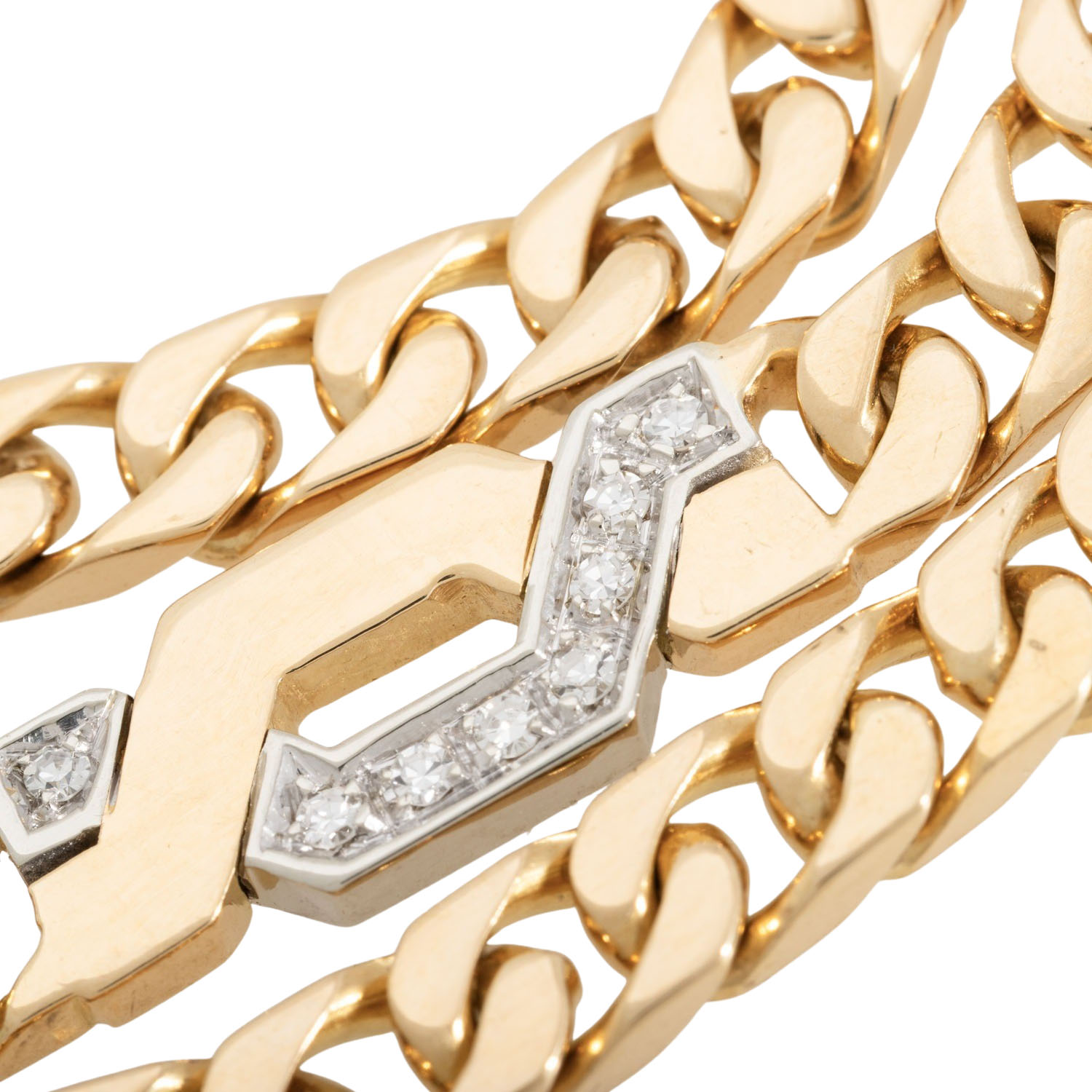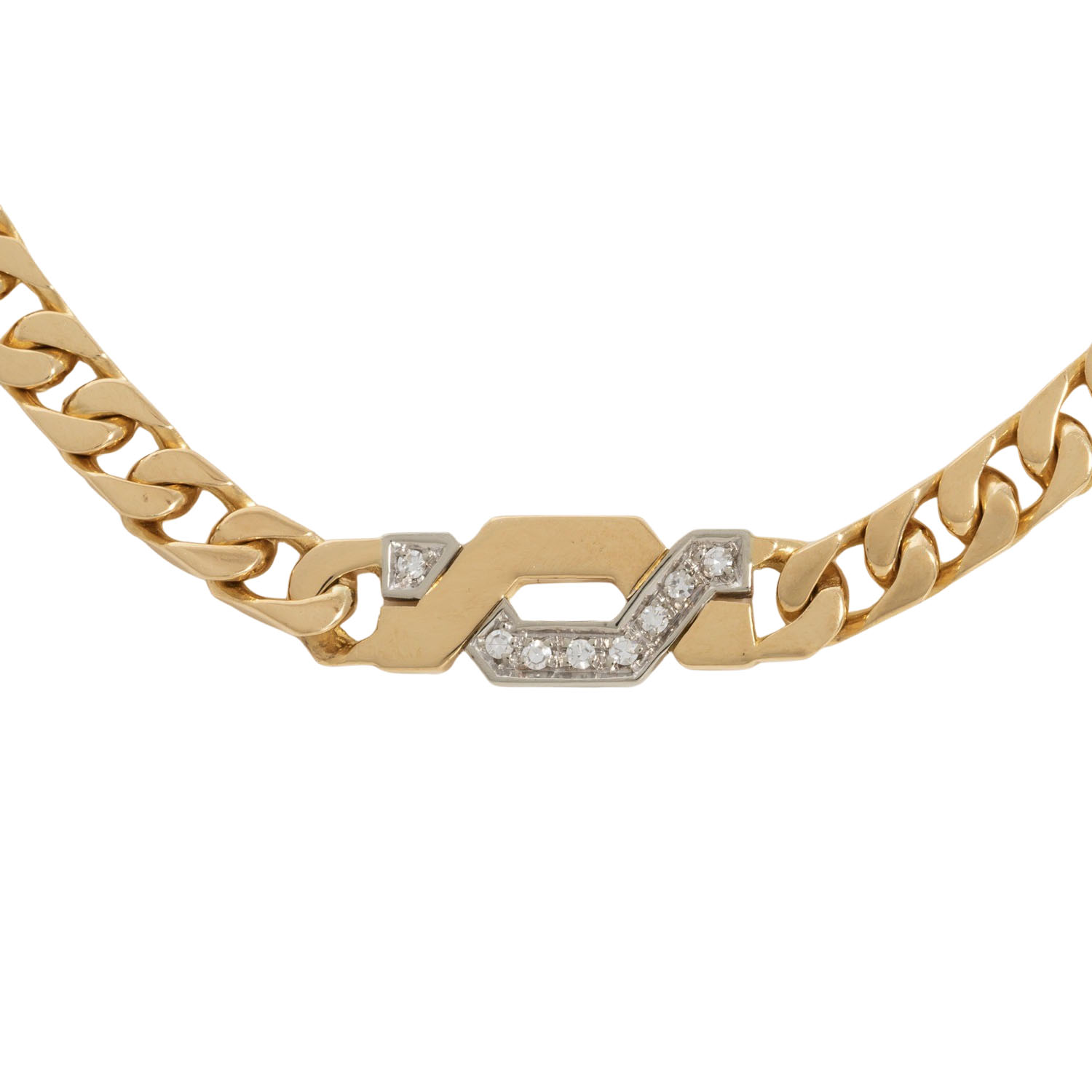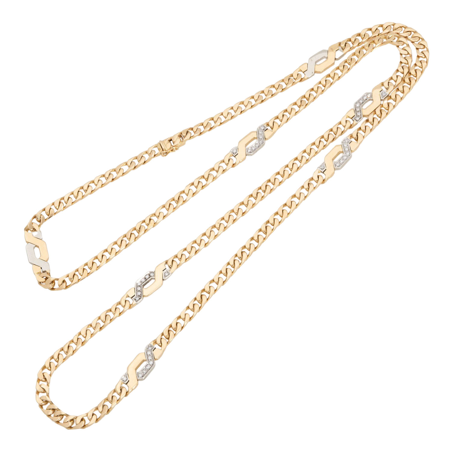 40 Achtkantdiamanten, ges. ca. 0.36 g, gute Farbe und Reinheit, GG/WG 18K, 100,g. L: 85,5 cm, B (Zierglied/Panzerkette): 8,5/5,3 mm, Kastenschloß, Sicherungsacht, Ende 20. Jh., minimale Tragespuren.