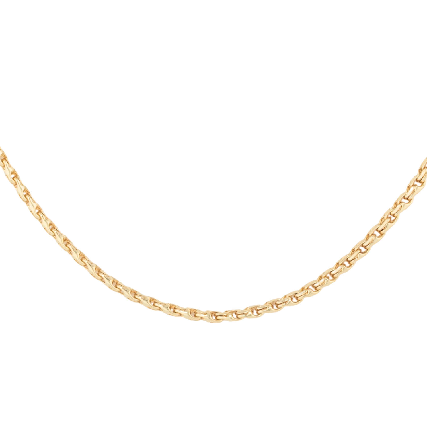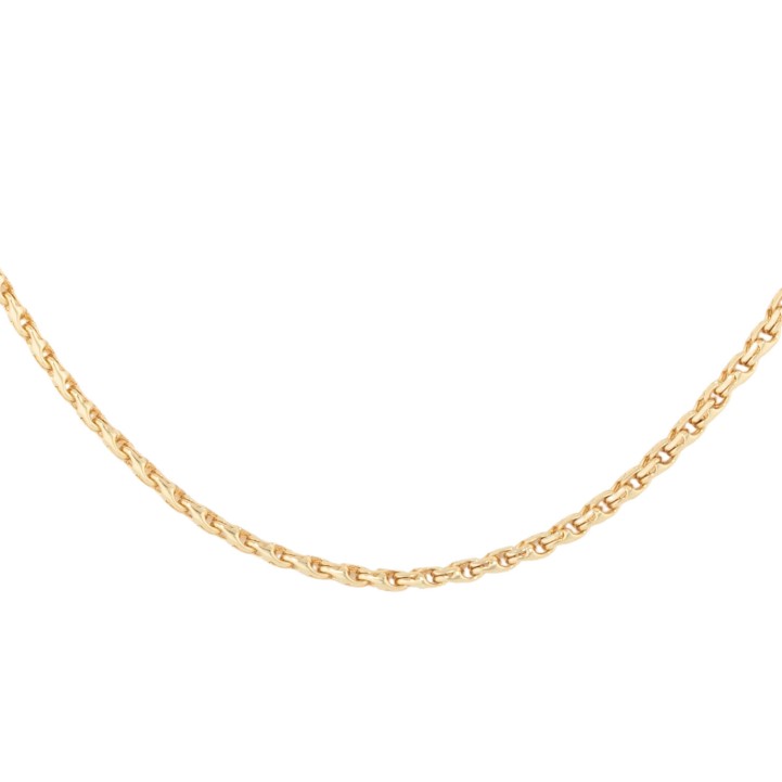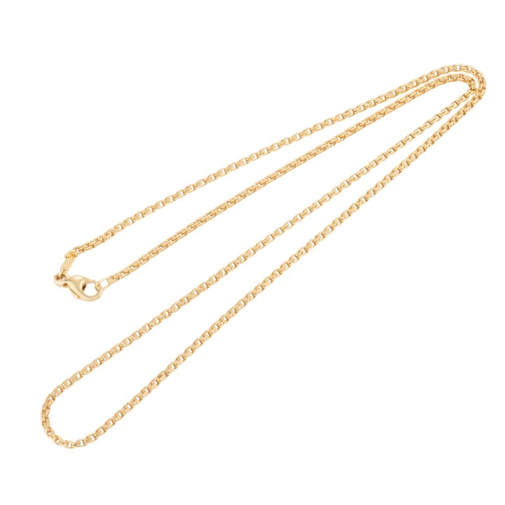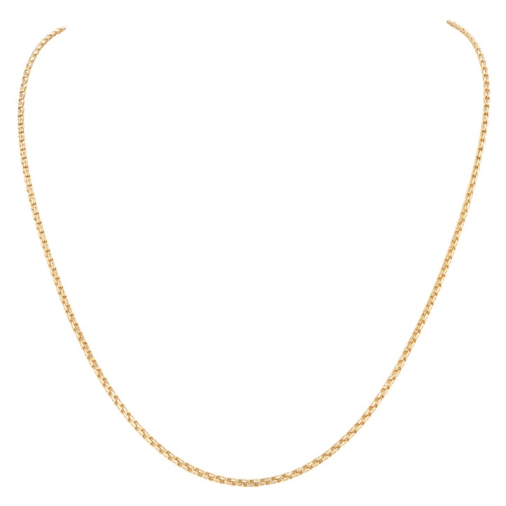 GG 18K, 9,0 g, L: 50 cm, B: 1,7 mm, Karabinerhaken, letztes Drittel 20. Jh., deutliche Tragespuren.
