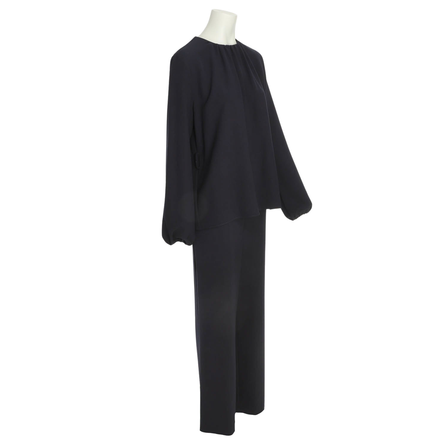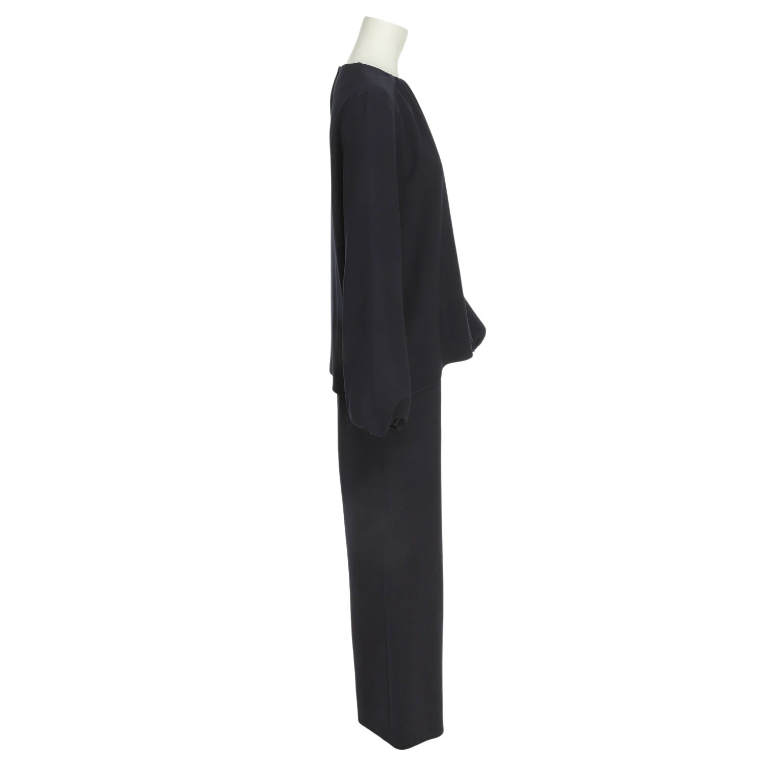 Oberteil und Hose aus dunkelblauem Textilgemisch. Hose ohne Etikett, sonst guter Erhalt.