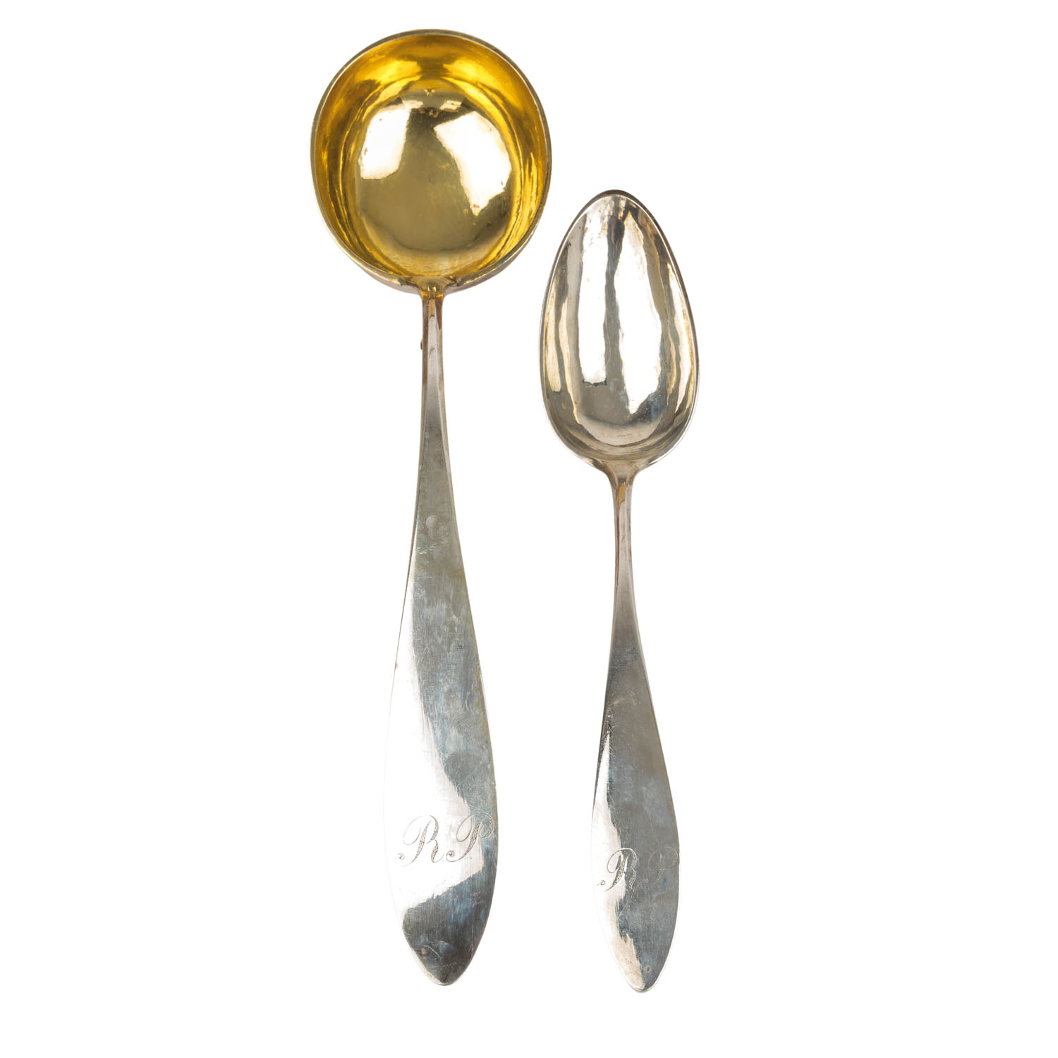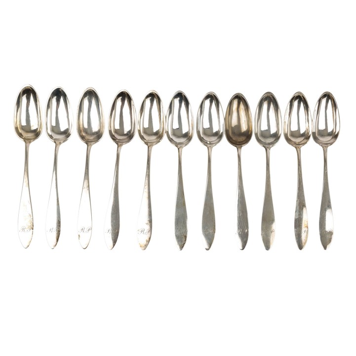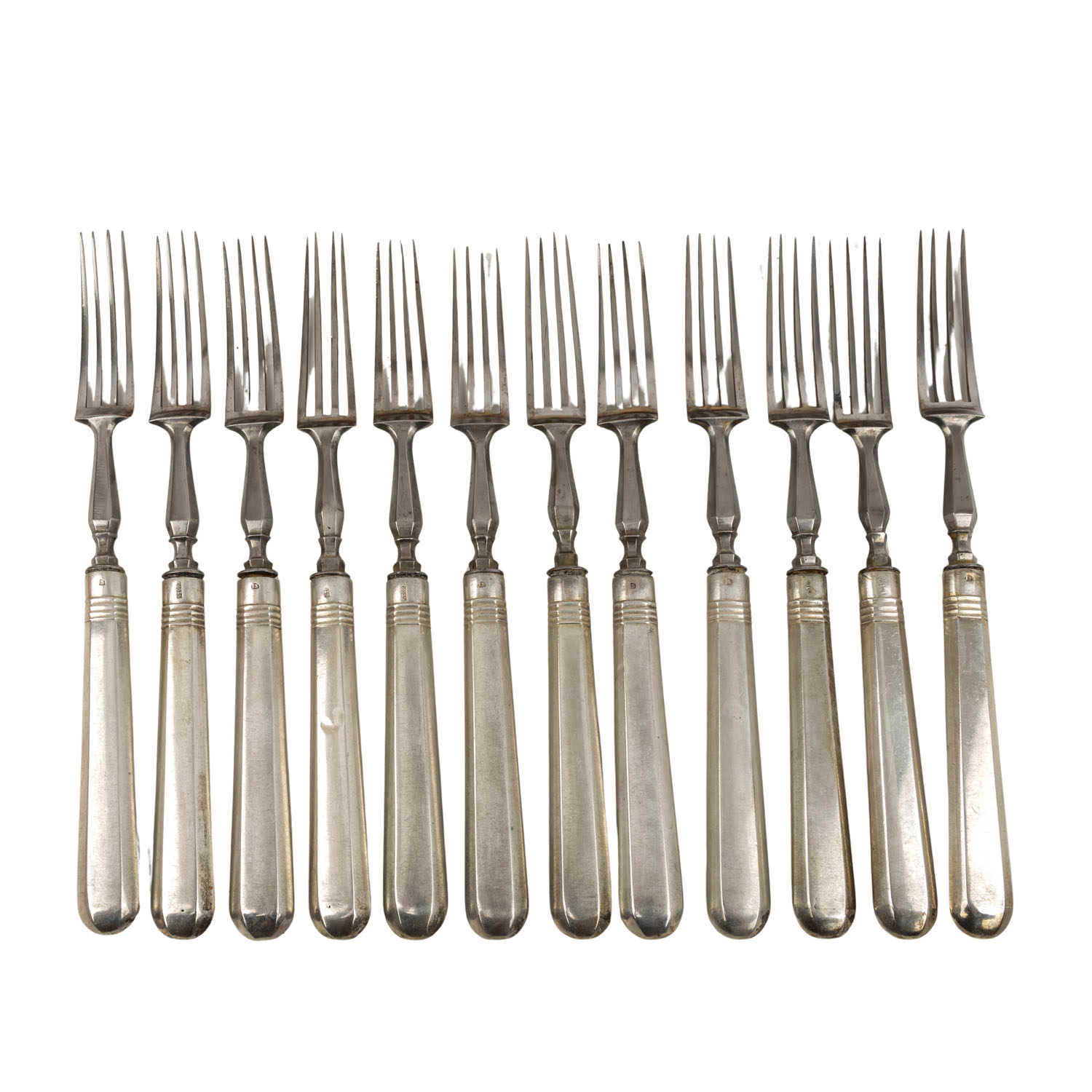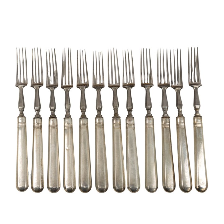 Provinienz: Rosine Pummerer (1840-1923), verheiratete Simson aus Passau. Sie war die Tochter des Anton V. Pummerer (1812-1888) und Urenkelin des Joachim E. Pummerer (1734-1823), der während der Auflösung des Passauer Fürstbistums-Hochstifts (1803) und der napoleonischen Ära Bürgermeister der Stadt Passau war und 1805 den Franzosenkaiser empfing. Außerdem war sie die Großmutter der bekannten Passauer Malerin Margarete Schneider-Reichel, die mit Otmar Schneider (1894-1967) verheiratet war. In zweiter Ehe verheiratete sich O. Schneider mit Kunigunde Müller, die das Besteck kurz vor ihrem Tode dem jetzigen Besitzer, dem Neffen von O. Schneider, schenkte.