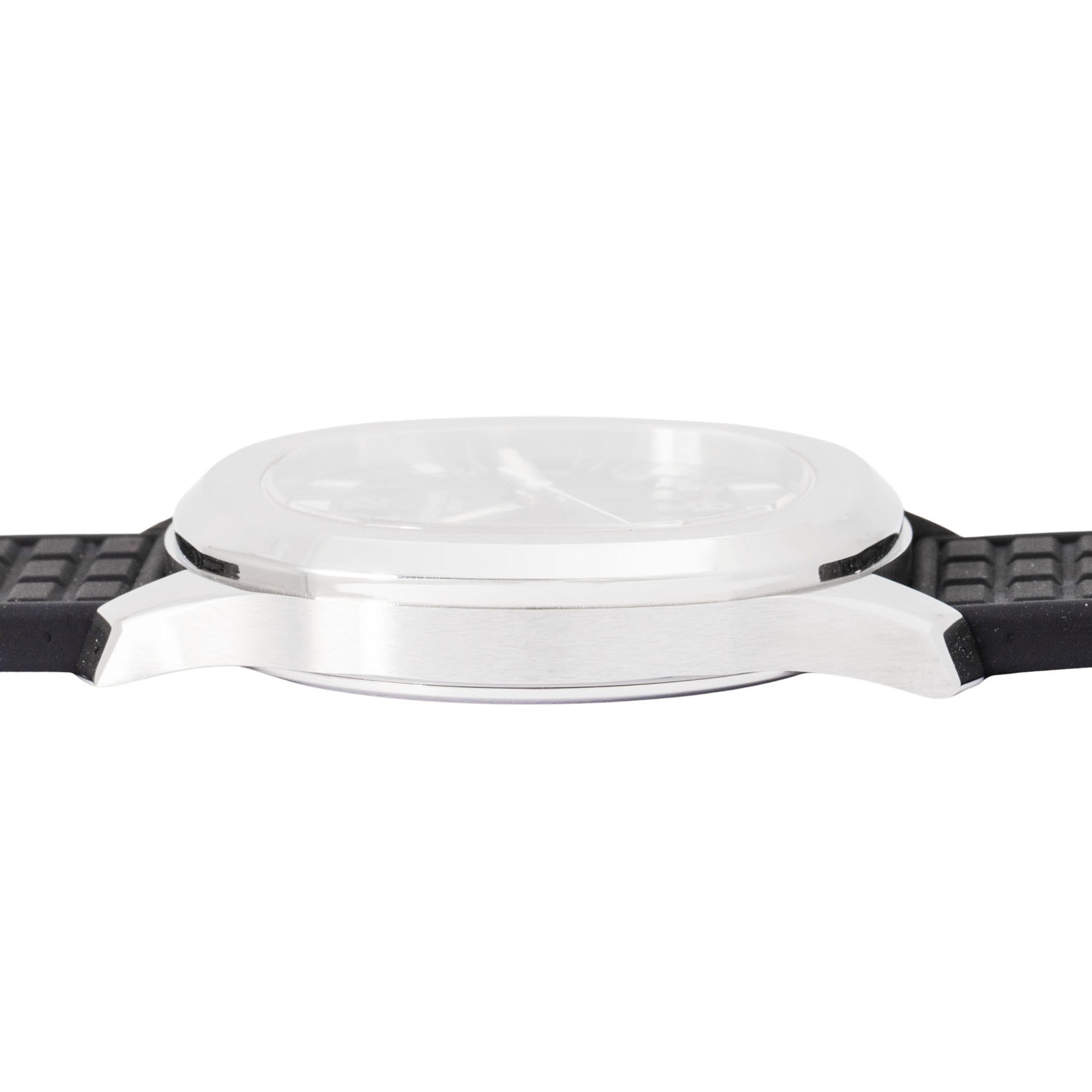 Edelstahl, Automatik-Werk Kal. 315 SC mit ausgezeichneten Gangwerten (+1 s/d, 314° Amplitude). Schwarzes, strukturiertes Ziffebrlatt mit arabischen Ziffern, Tritium-Leuchtindizes und -zeiger, Zantralsekunde und Datumsanzeige. Strukturiertes Original Kautschuk-Armband mit Butterfly-Schließe, passend für einen Handgelenksumfang von ca. 22,5 cm, inkl. Original Edelstahl-Gliederarmband mit Butterflyschließe und Ersatzglied. Guter Zustand, einige leichte Kratzer am Gehäuse. ein etwas größerer, sichtbarer Kratzer am Gehäuserand zwischen 8 & 9 Uhr. Original Box, Echtheitszertifikat vom 03.02.2006, Kaufrechnung von Juwelier Wempe in Bremen, Gebrauchsanleitung, Händlergarantie und Booklets in Zubehör-Ledertasche anbei. Durchmesser ca. 38 mm gemessen ohne Krone.