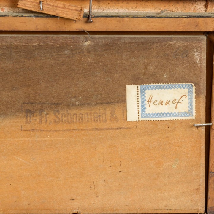 | PAULUS, PAUL (1915-2013), 'Farmer with team of oxen in a wide landscape', below left signed and inscribed 'P. Paulus Ddf. ' (for Düsseldorf), oil / paper mounted on wood, HxW: approx. 13x18 cm (37x42 cm with frame). Paper slightly detached from the wood and waved, the edges rubbed. With frame (stuccoed wood; minimally damaged).