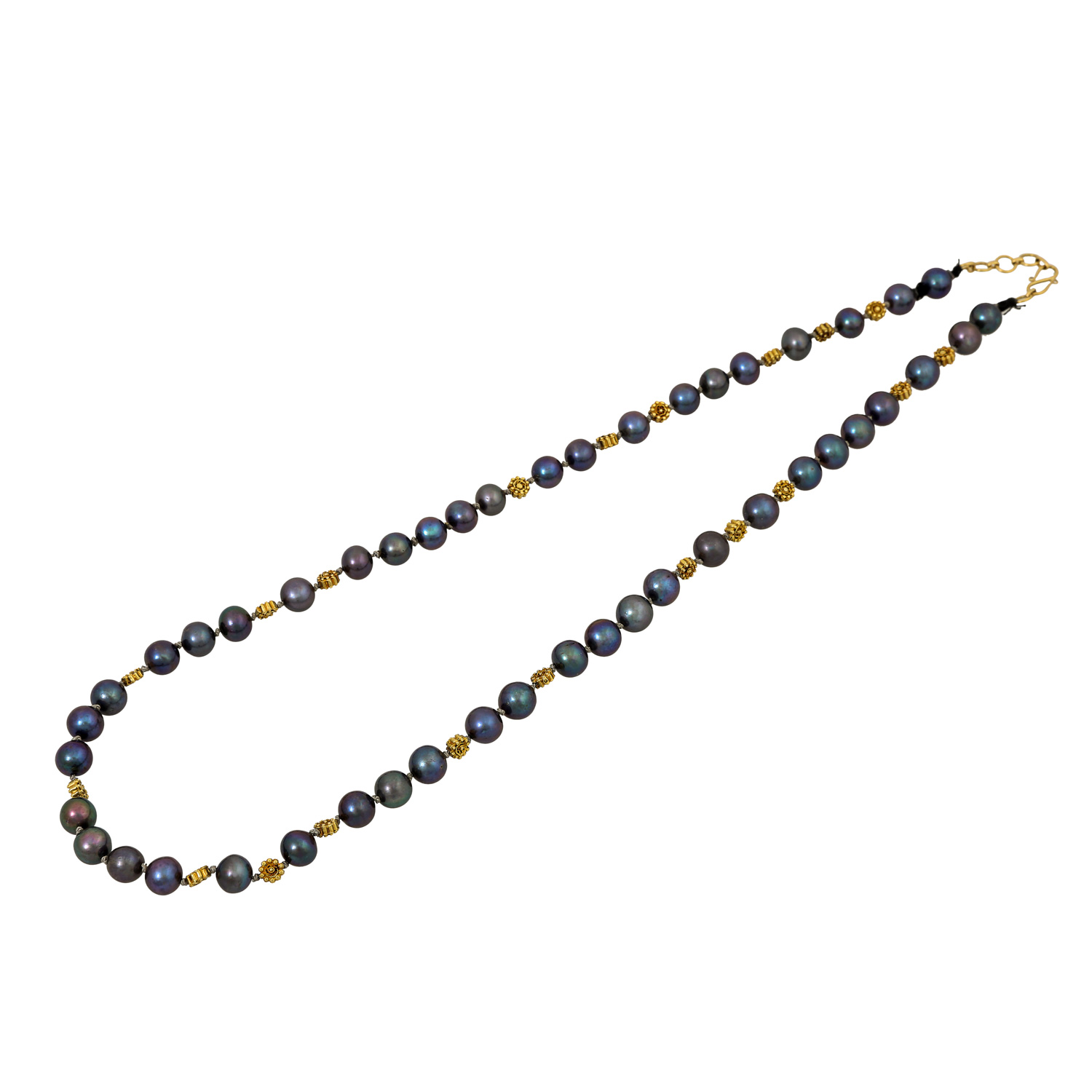 Endlos Perlenkette mit 56 Goldkugeln und 392 Süßwasserzuchtperlen