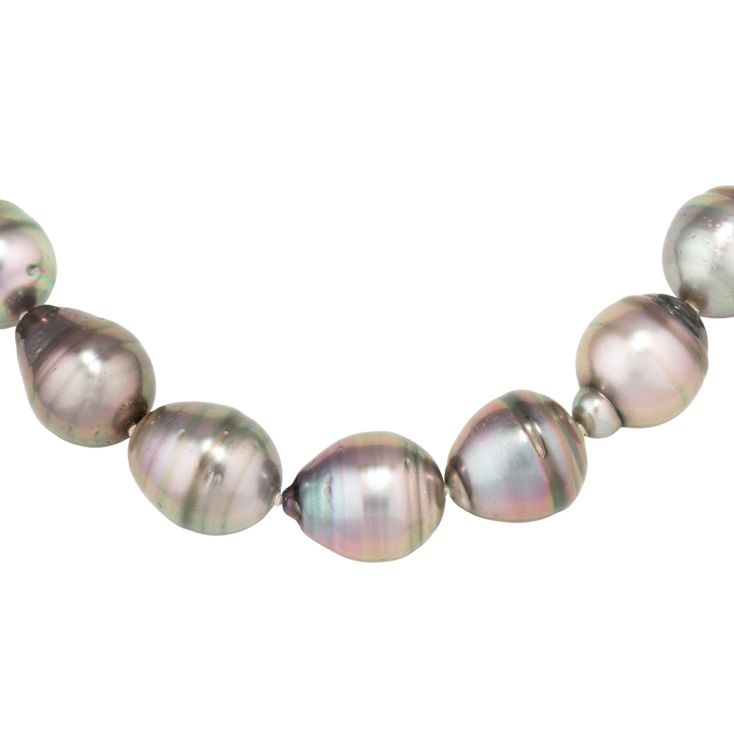 Perlkette, 27 barocke schwarz-graue Südseeperlen,