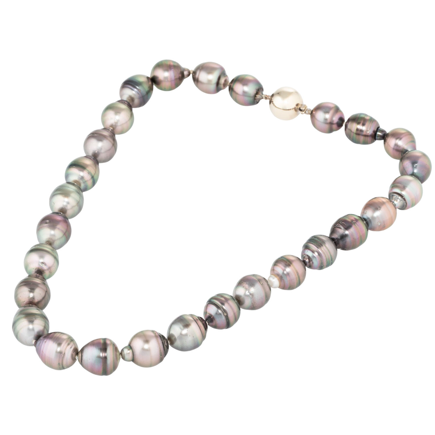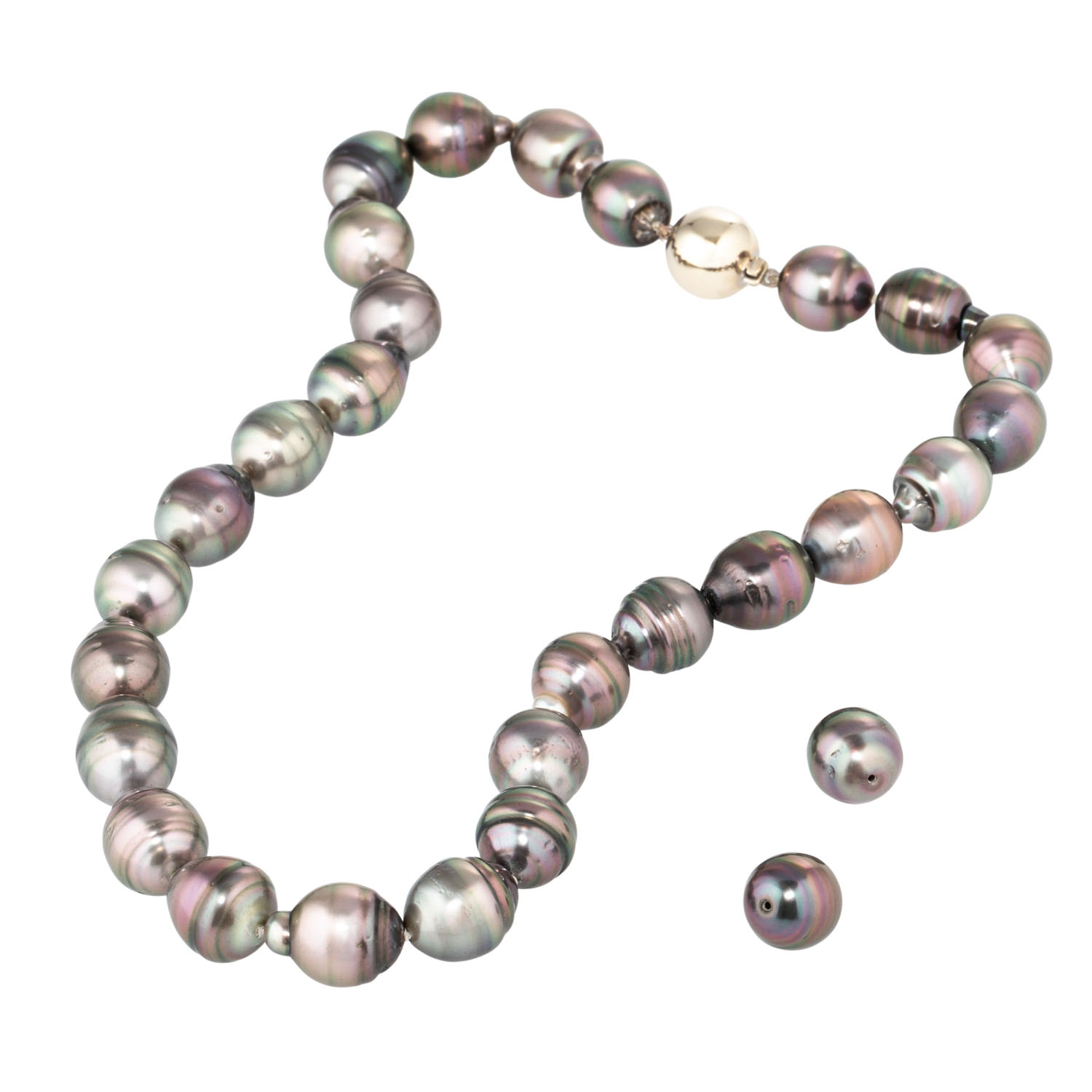 Perlkette mit 33 schwarzen Tahiti-Perlen,