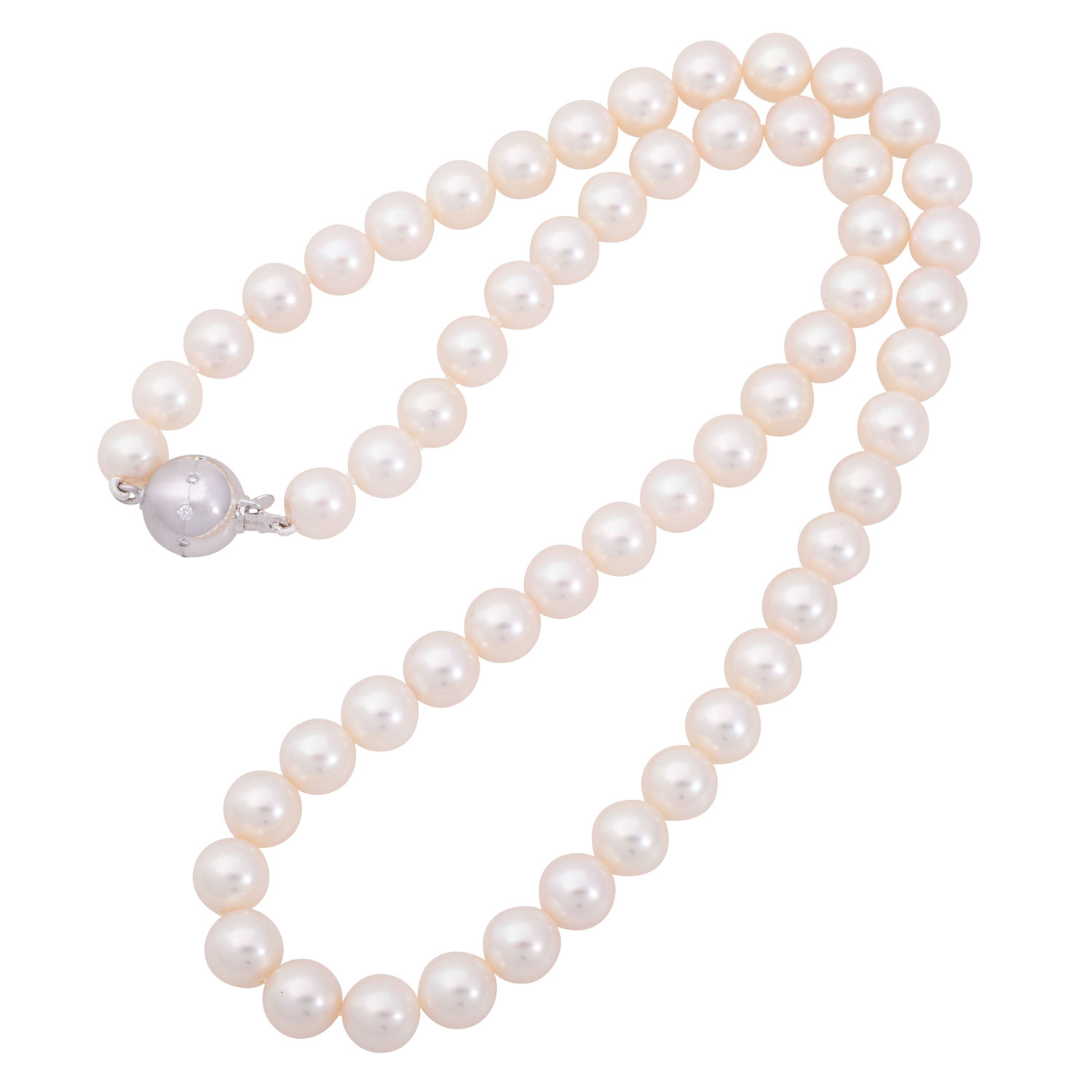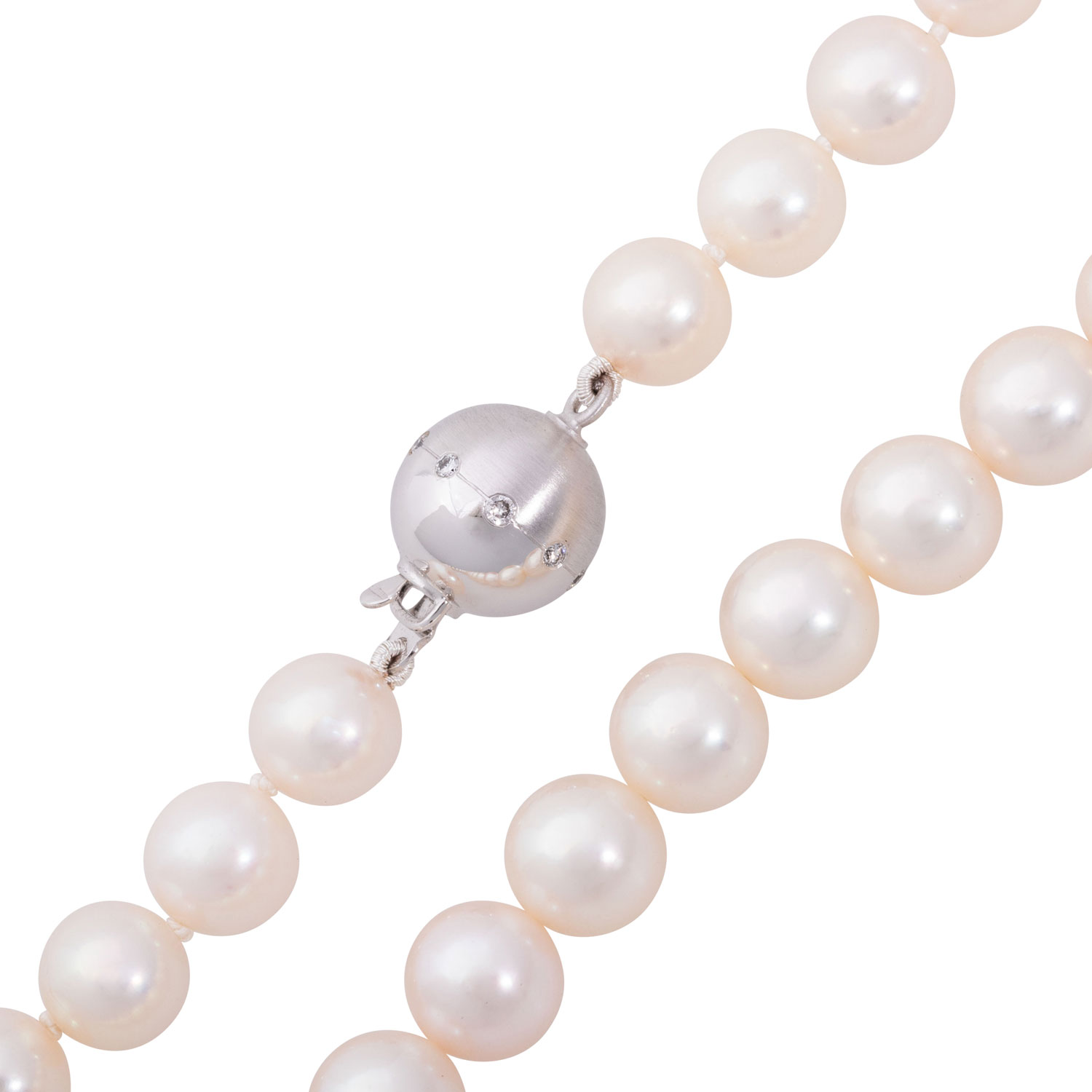 Perlenkette aus 47 weißen Akoya-Zuchtperlen,