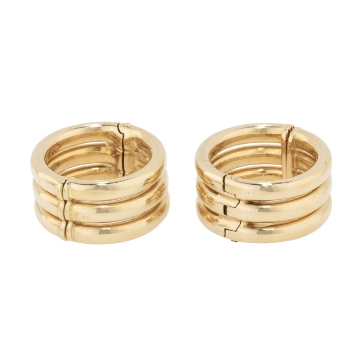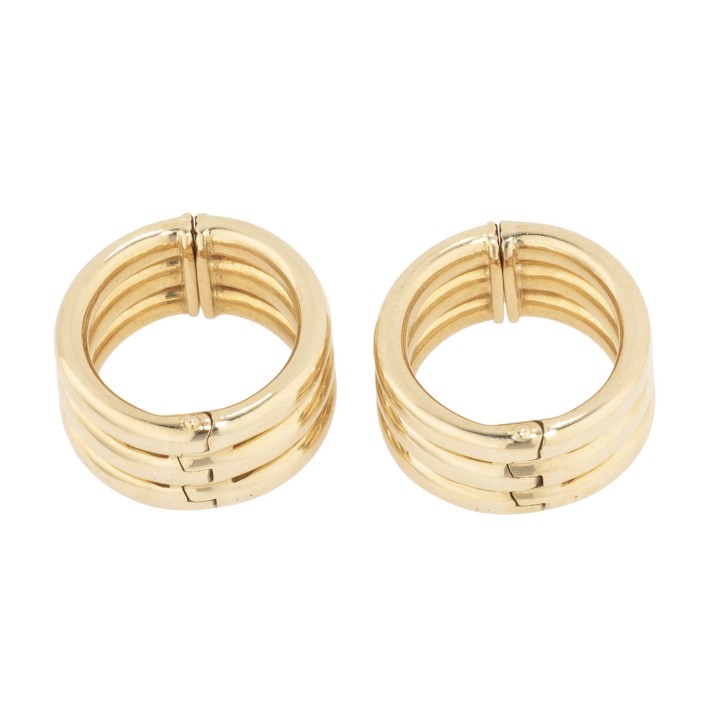 aus GG 18K, 19 g, D: 2 cm, B: 1 cm, Ende 20. Jh., Tragespuren, leicht gedellt, punziert POMELLATO. (17)