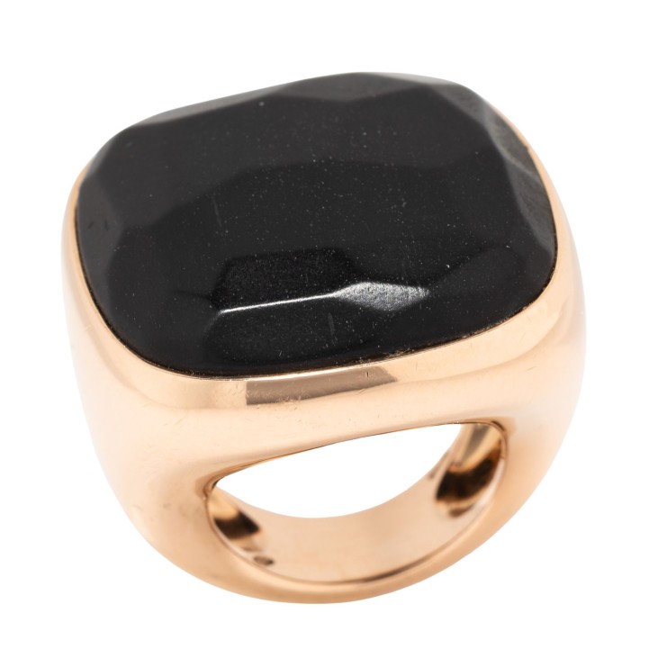 POMELLATO Ring 'Victoria' with jet. 18K RSG, 35,2g, ringsize: 51, 21th century, minor signs of wear, jet matted, with maker's mark, engraved: C700023819, certificate and box included.