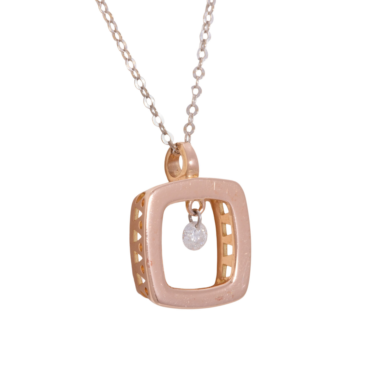ca. 0,05 ct, WEISS (H)/SI, WG/RG 18K, 2,5 g, NP: ca. 1.170.-€ (2025), Ankerkette, poliert, L: ca. 47 cm, B: ca. 0,6 mm, Anhänger: ca. 13,1 x 10,2 mm, 21. Jh., minimale Tragespuren, mit italenischer Herstellerpunze.