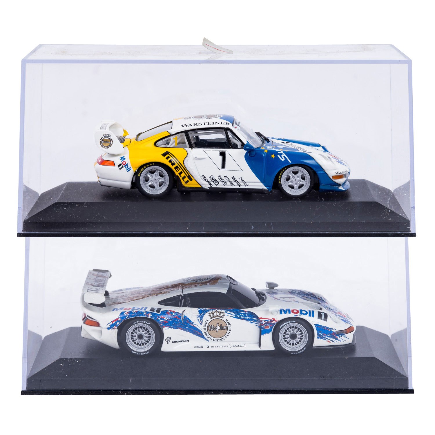 2.) Paul´s Model Art/ Minichamps, Porsche 911 Cup 3.8, Metal 1:43, WAP 020 030, in Originalverpackung. Jeweils Alters- und Gebrauchsspuren.