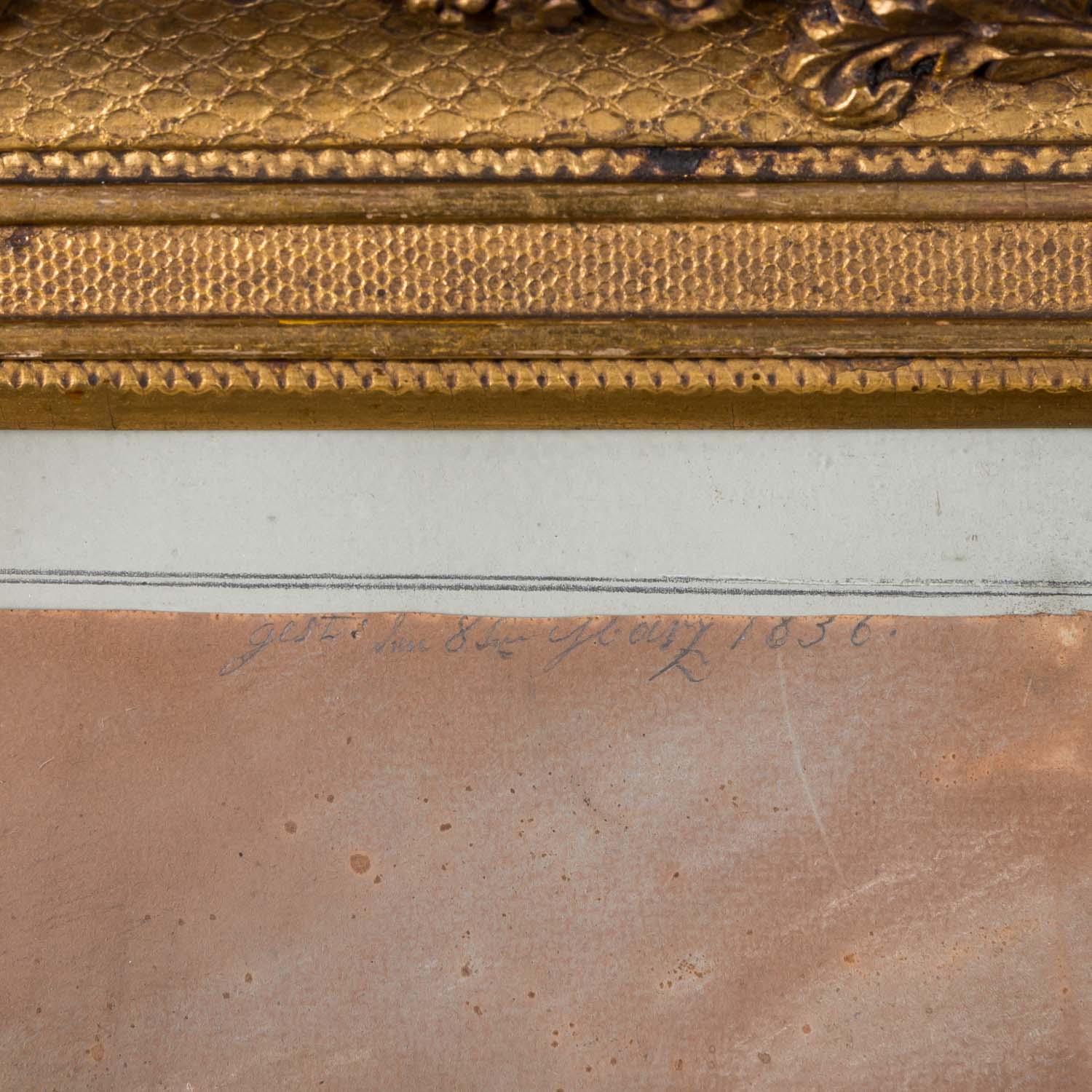 Mischtechnik, HxB: 34/30 cm. Leichte Altersspuren. Rahmen, HxB: 50/45 cm.