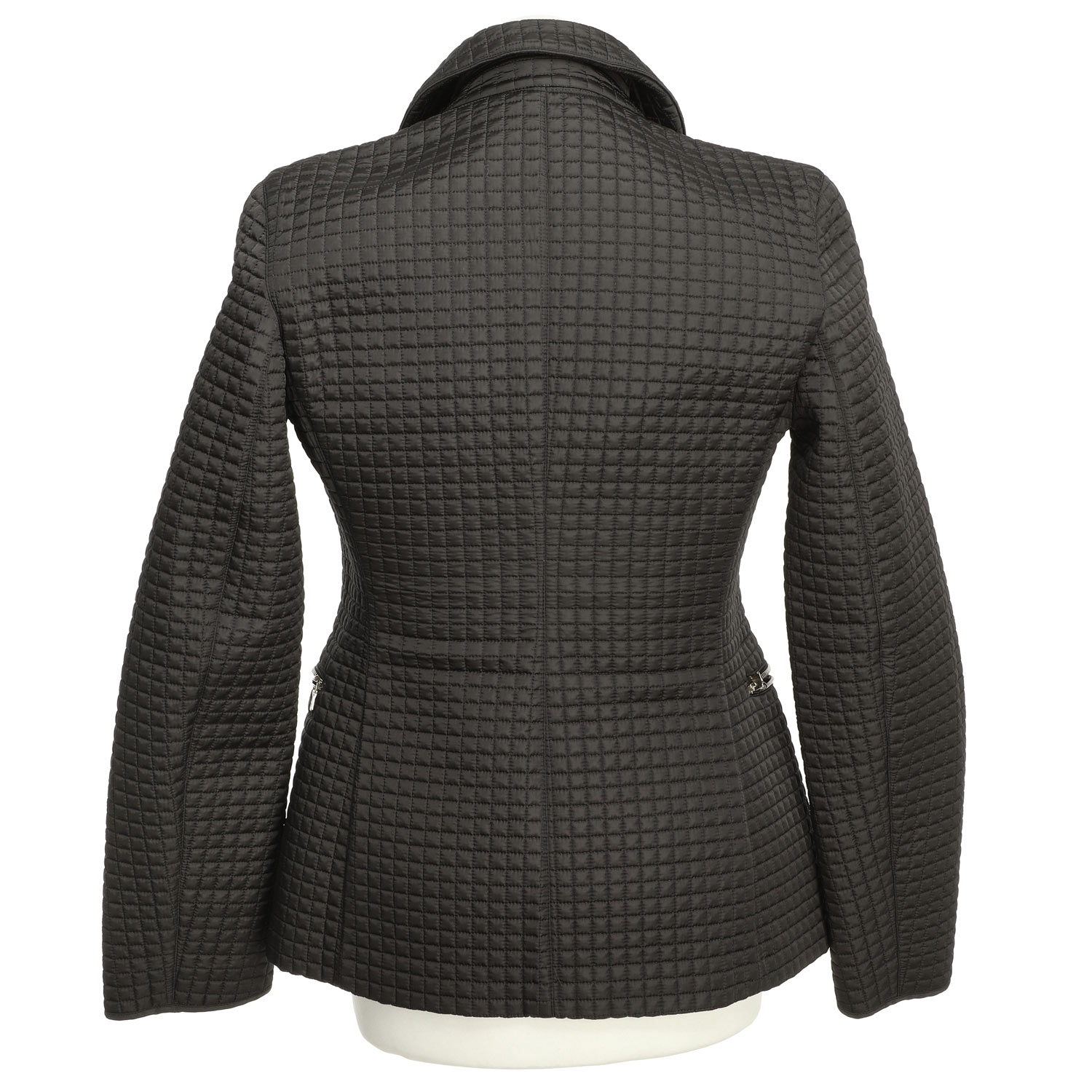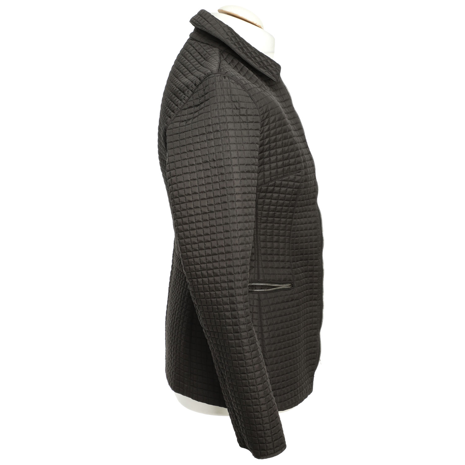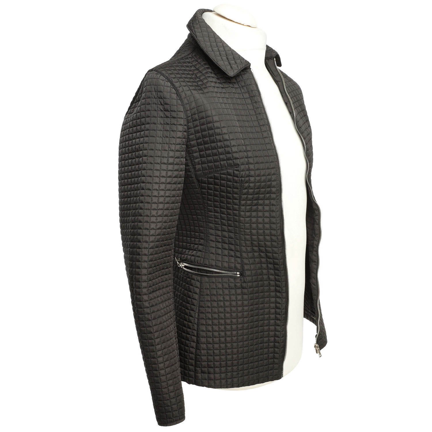 100% Nylon in Schwarz mit All-Over Steppmuster. Reißverschluss in Silberfarben. Schlichtes Design. Leichte Tragespuren vorhanden.