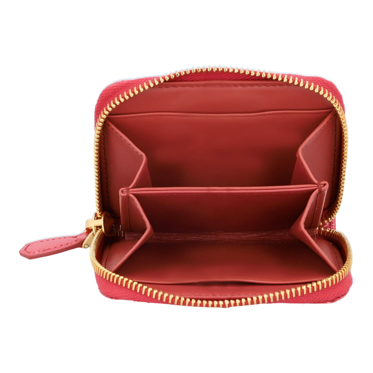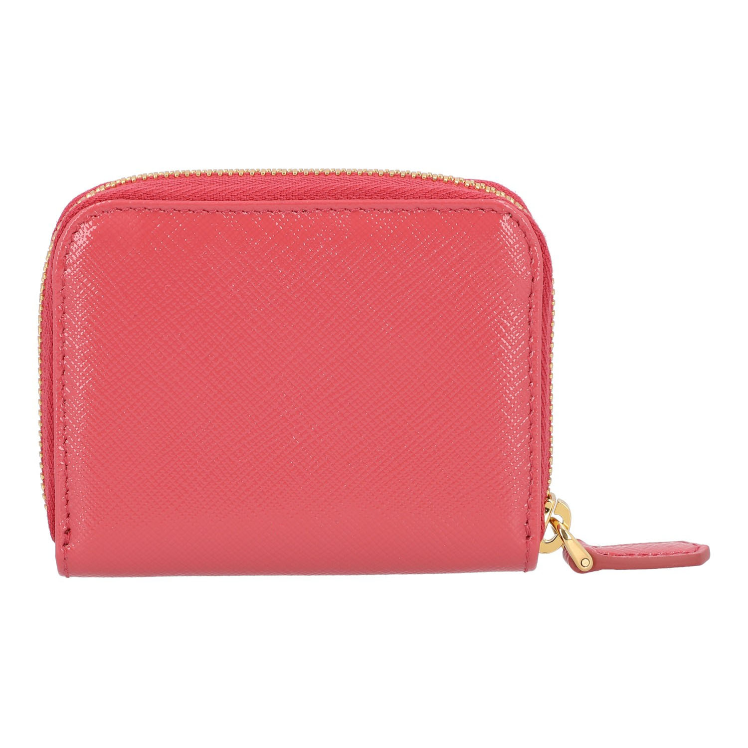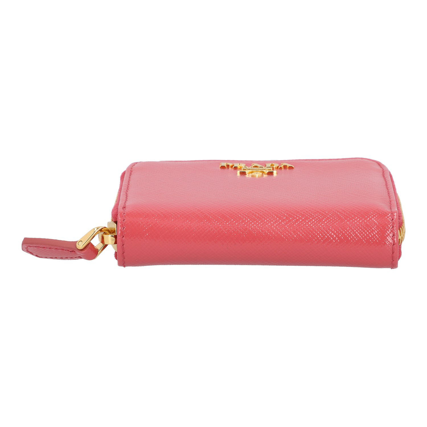 Rosafarbenes Modell aus Lack-Saffianoleder mit goldfarbener Hardware und umlaufendem Reißverschluss. Innenraum mit vier Abteilen. Box anbei. Neuwertig. 10 x 2 x 8 cm