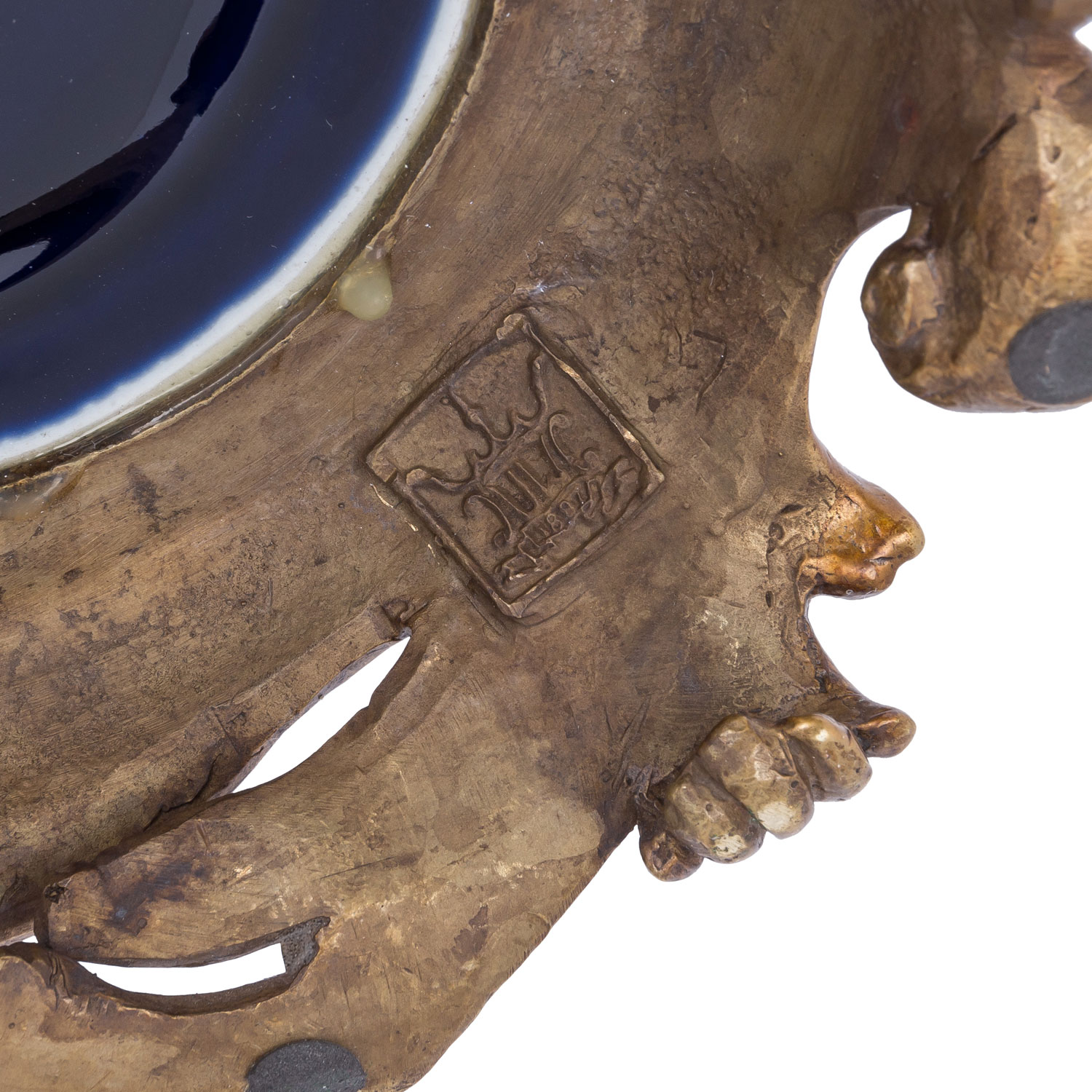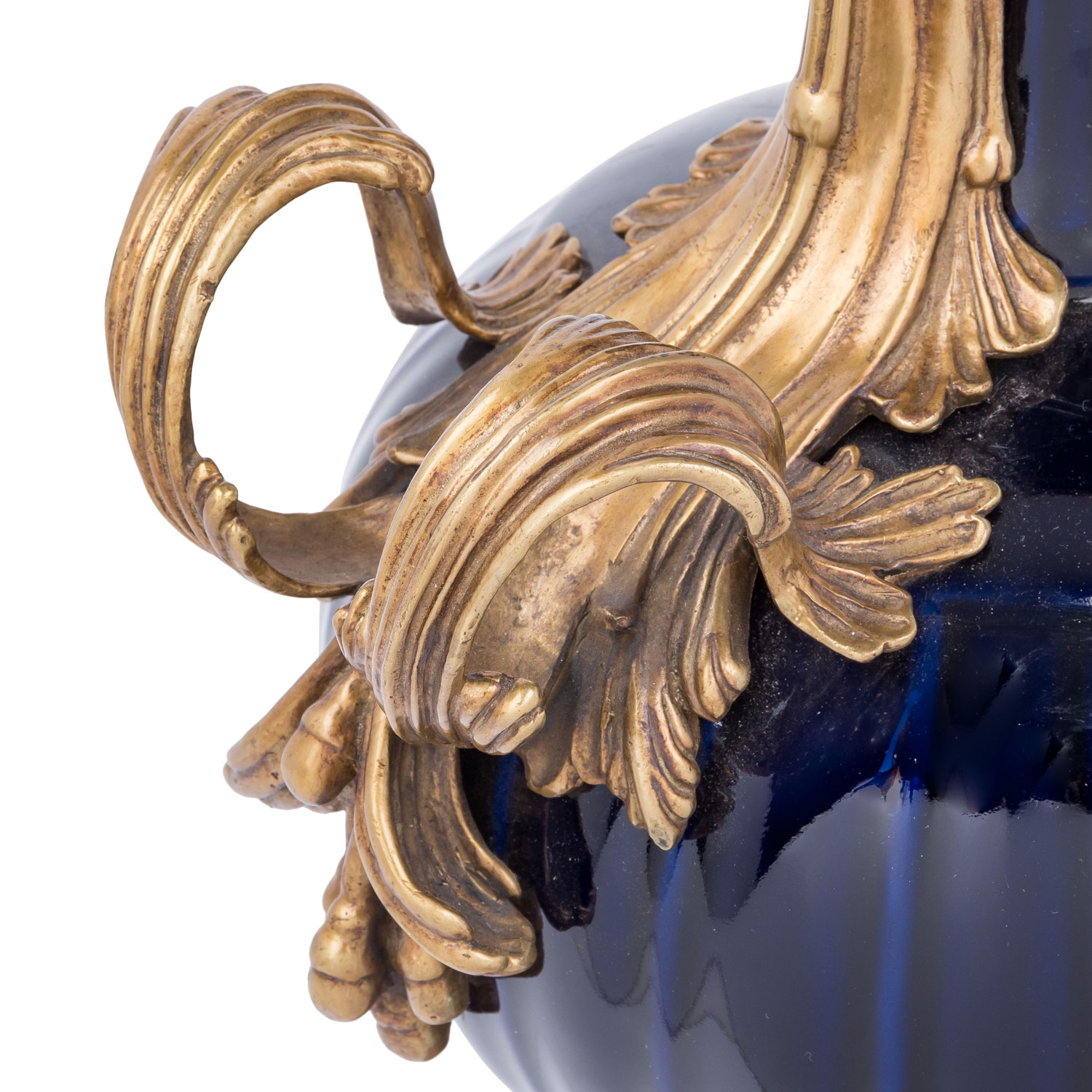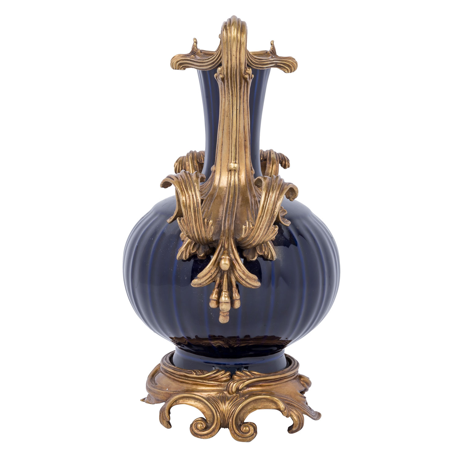 Dunkelblau glasiert und mit Messingmontur reich verziert, H: 39.