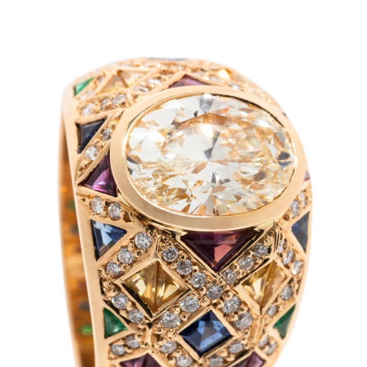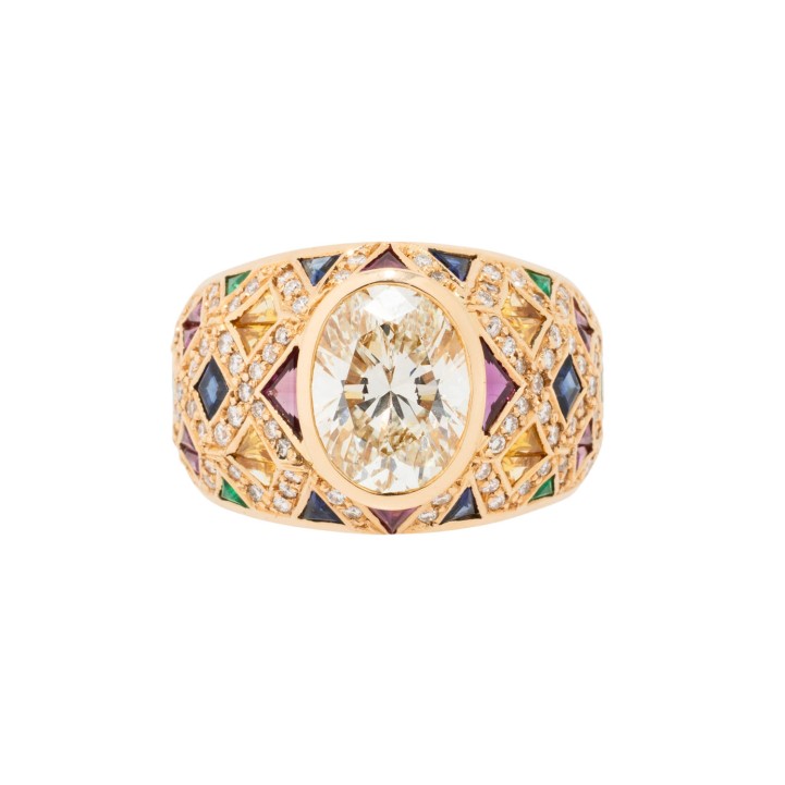 Reich besetzter Ring mit 1 ovalen Diamant ca.3,0 ct,