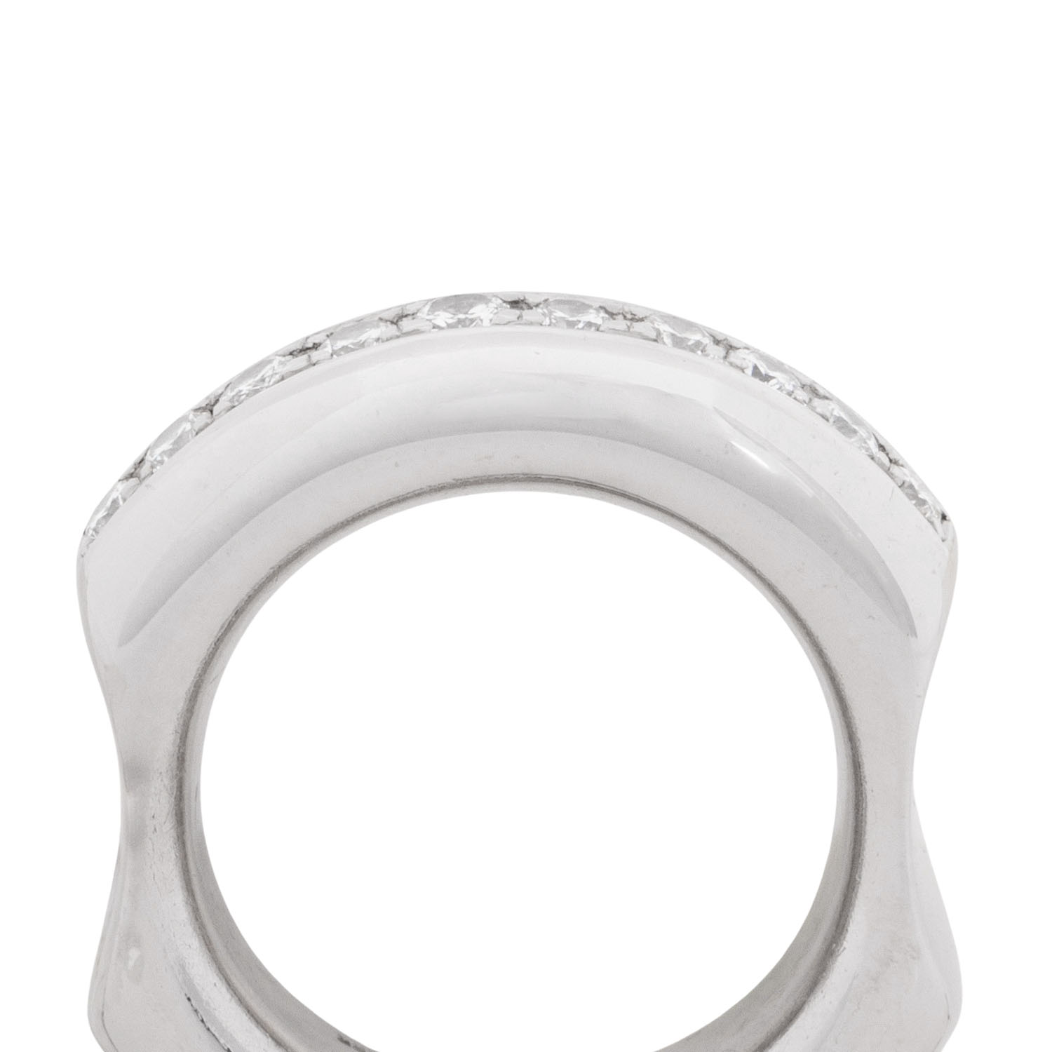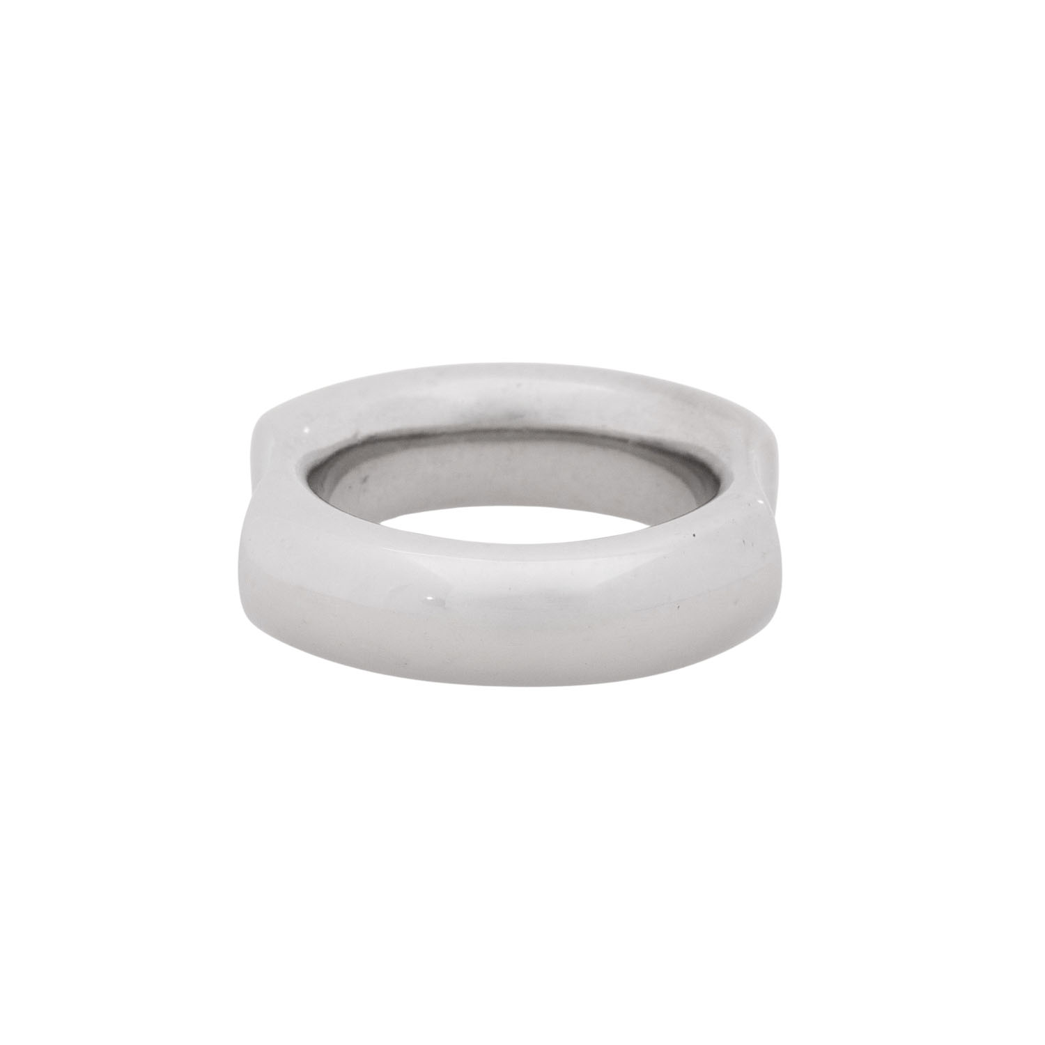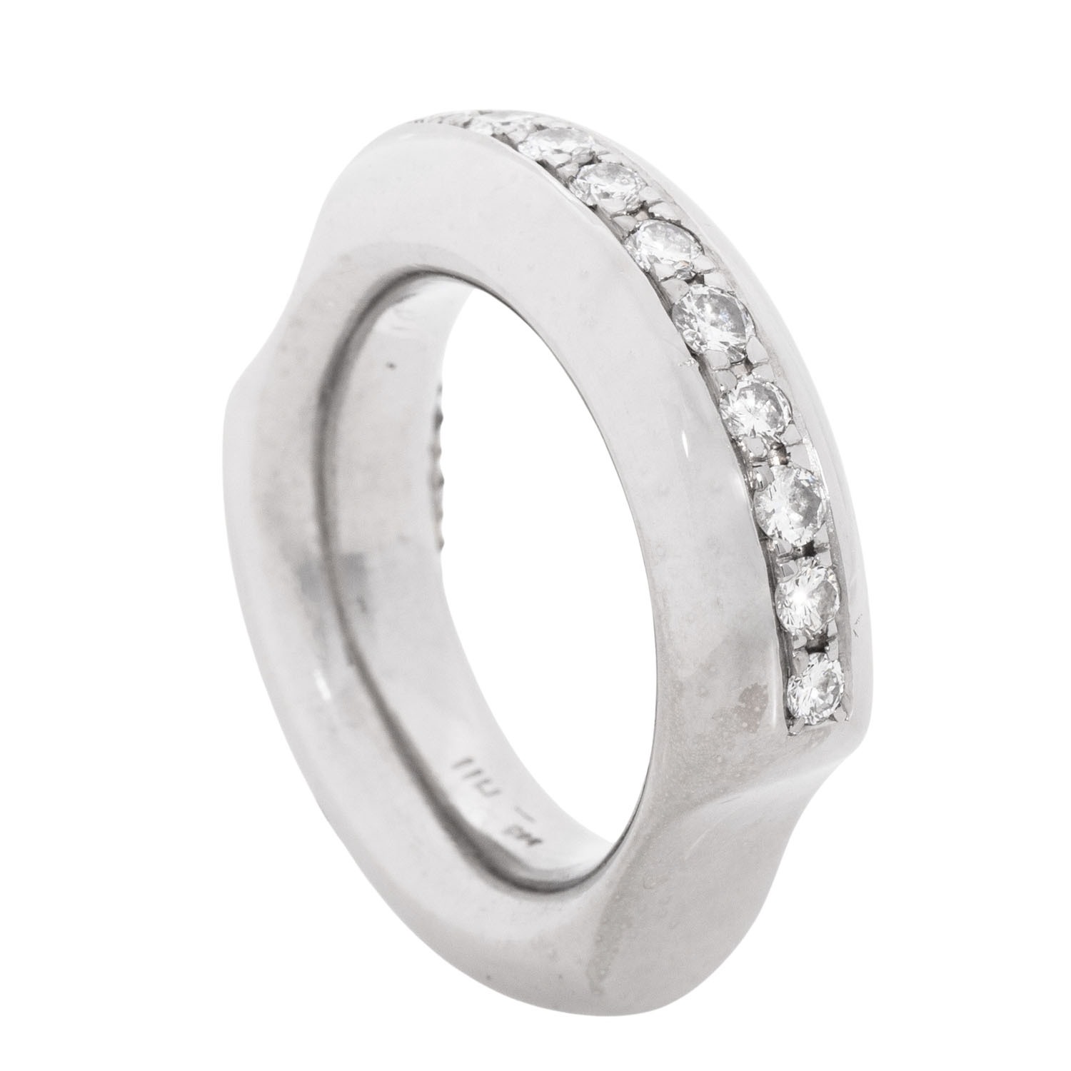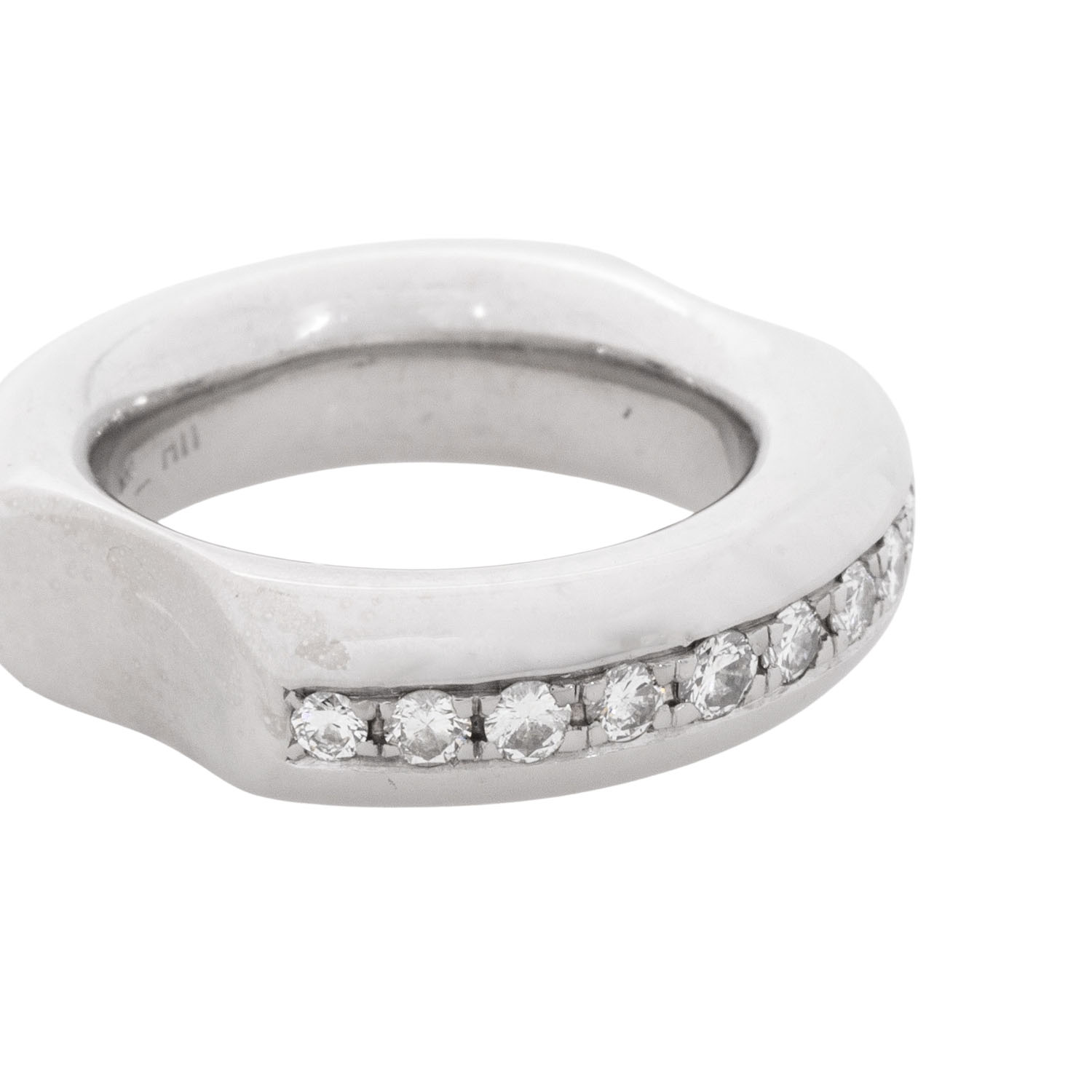zus. ca. 0,75 ct, FW- WEISS (G-H)/VS-SI, WG 14K, 21,2 g, RW: 52,5, B: ca. 6,6 mm, 21. Jh., mit Tragespuren, massive Ausführung, Goldschmiedearbeit.