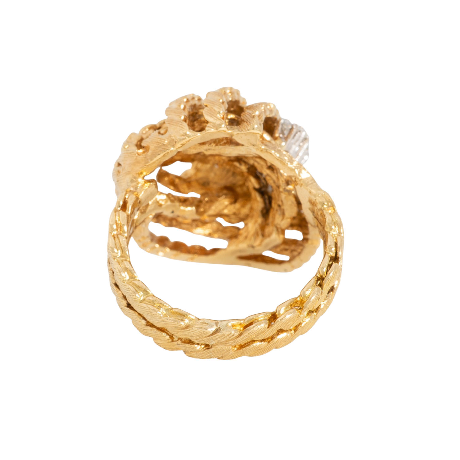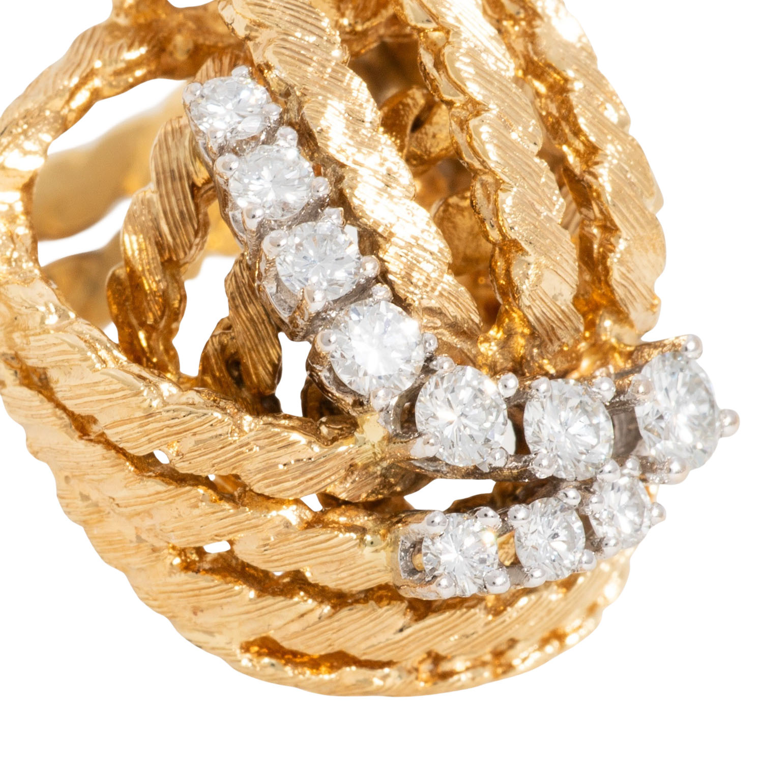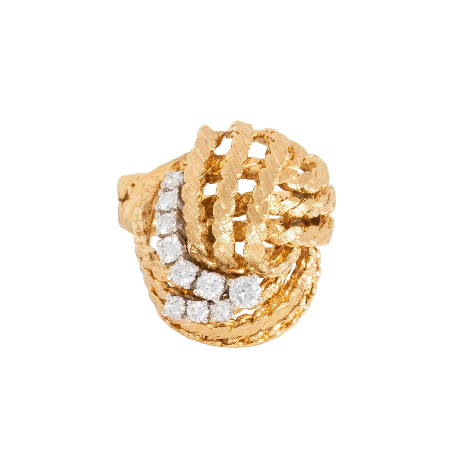 zus. ca. 0,46 ct, FW-WEISS (F-H)/VS-P, GG/WG 18K, 14,4 g, mattiert, RW: 53, B: ca. 5 - 21,9 mm, 2. H. 20. Jh., minimale Tragespuren, mit Herstellerpunze.