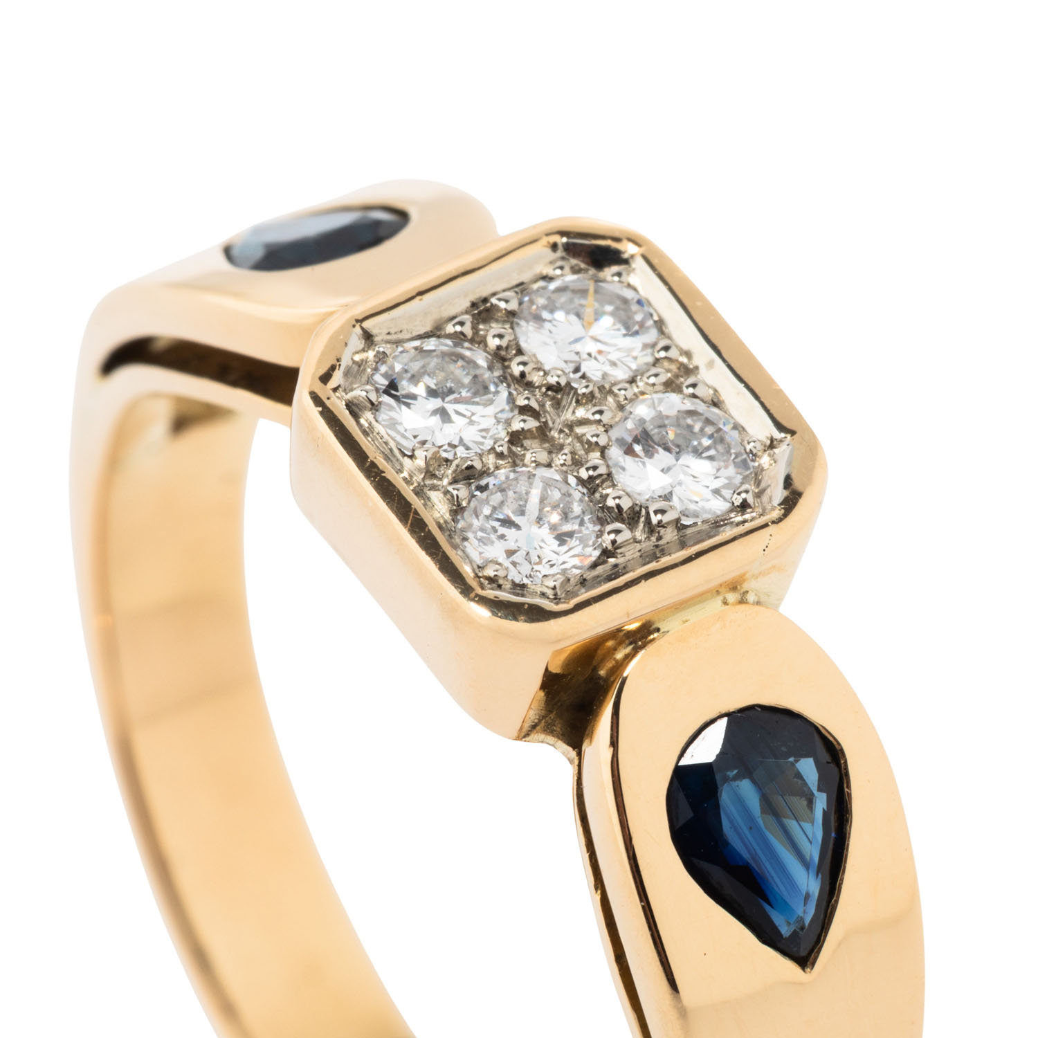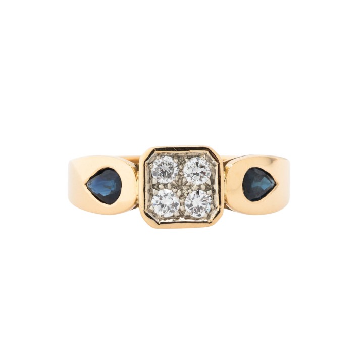 zus. ca. 0,28 ct, ca. WEISS(H)/SI, Saphirtropfen, ca. 5 x 4 mm, GG 18K, 6,5 g, RW: 62, 20. Jh., guter Zustand.