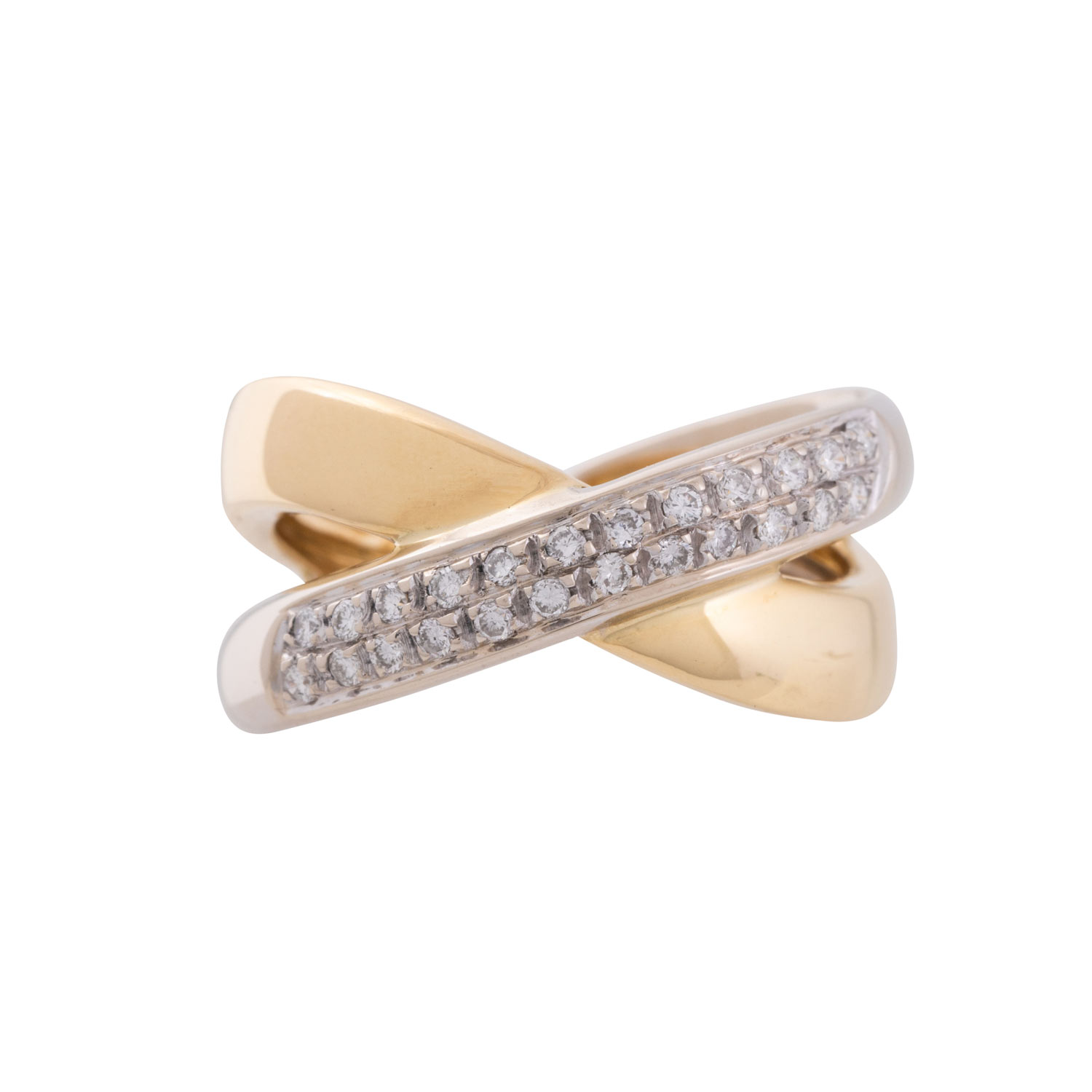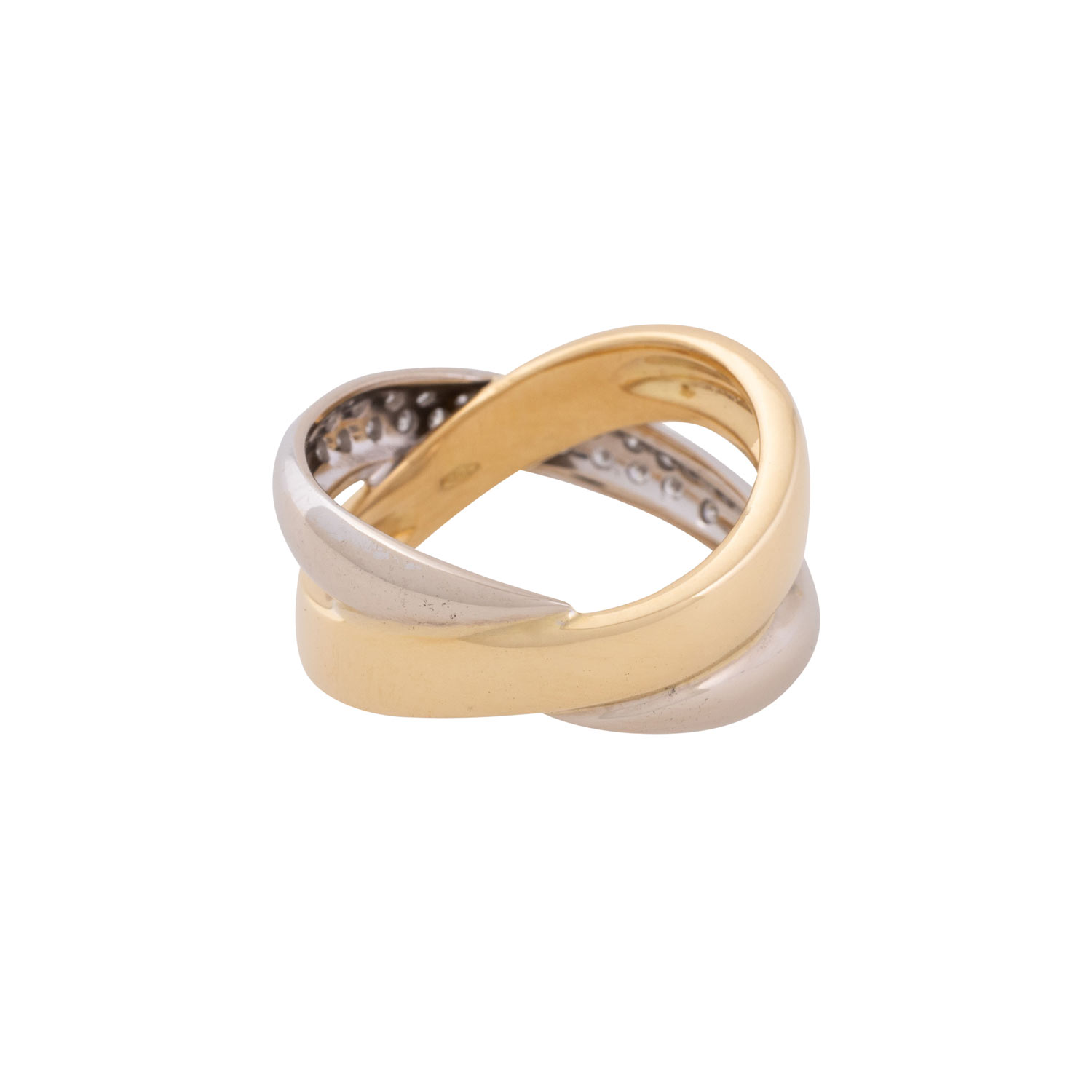 ges. ca. 0,12 ct, gute Farbe und Reinheit, GG/WG 18K, 7,7 g, RW: 54, Ende 20. Jh., minimale Tragespuren.