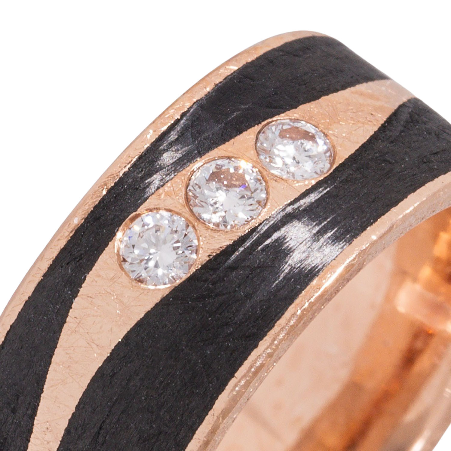 zus., ca. 0,15 ct, ca. WEISS (H)/SI, schwarzes Carbon, RG 14K, 7,9 g, B: ca. 8 mm, RW: 51, 21. Jh., mit Tragespuren.