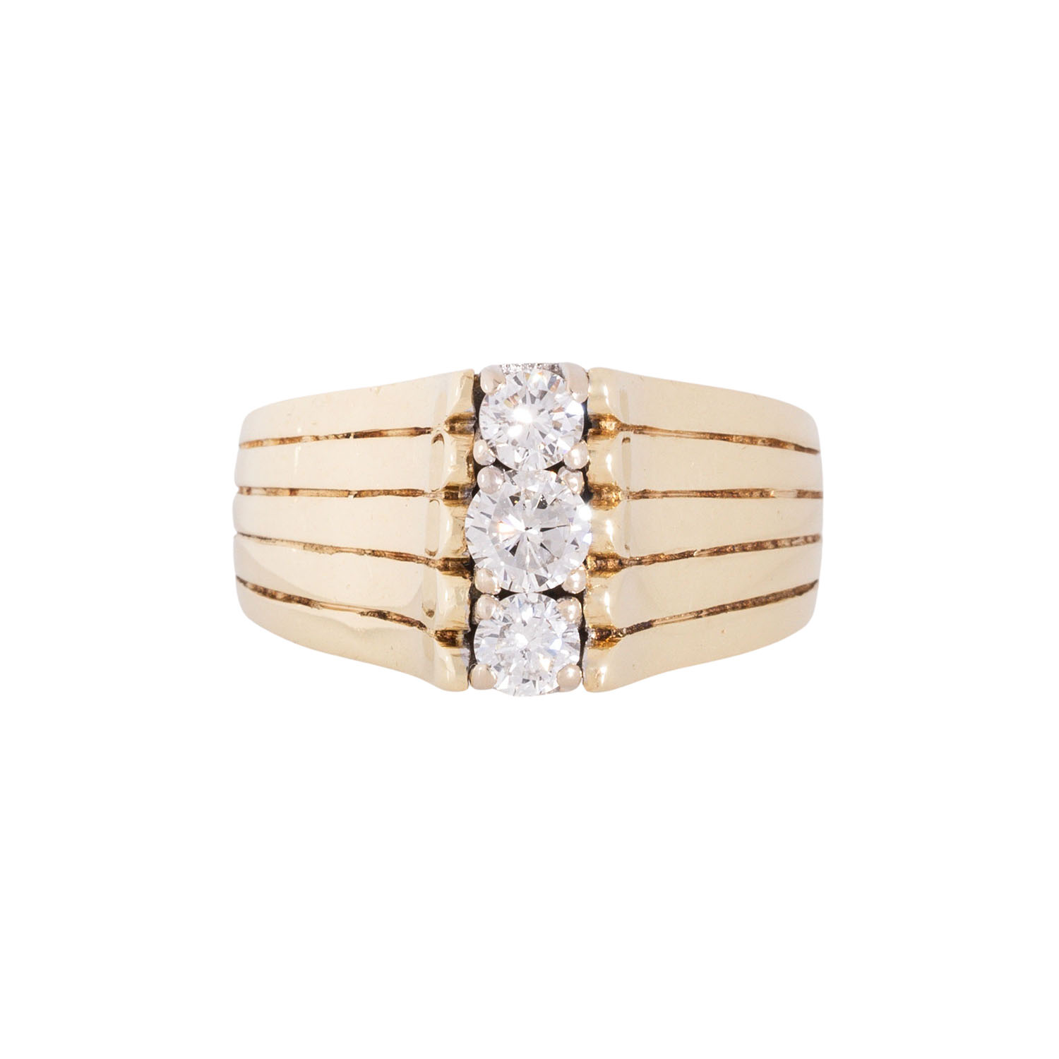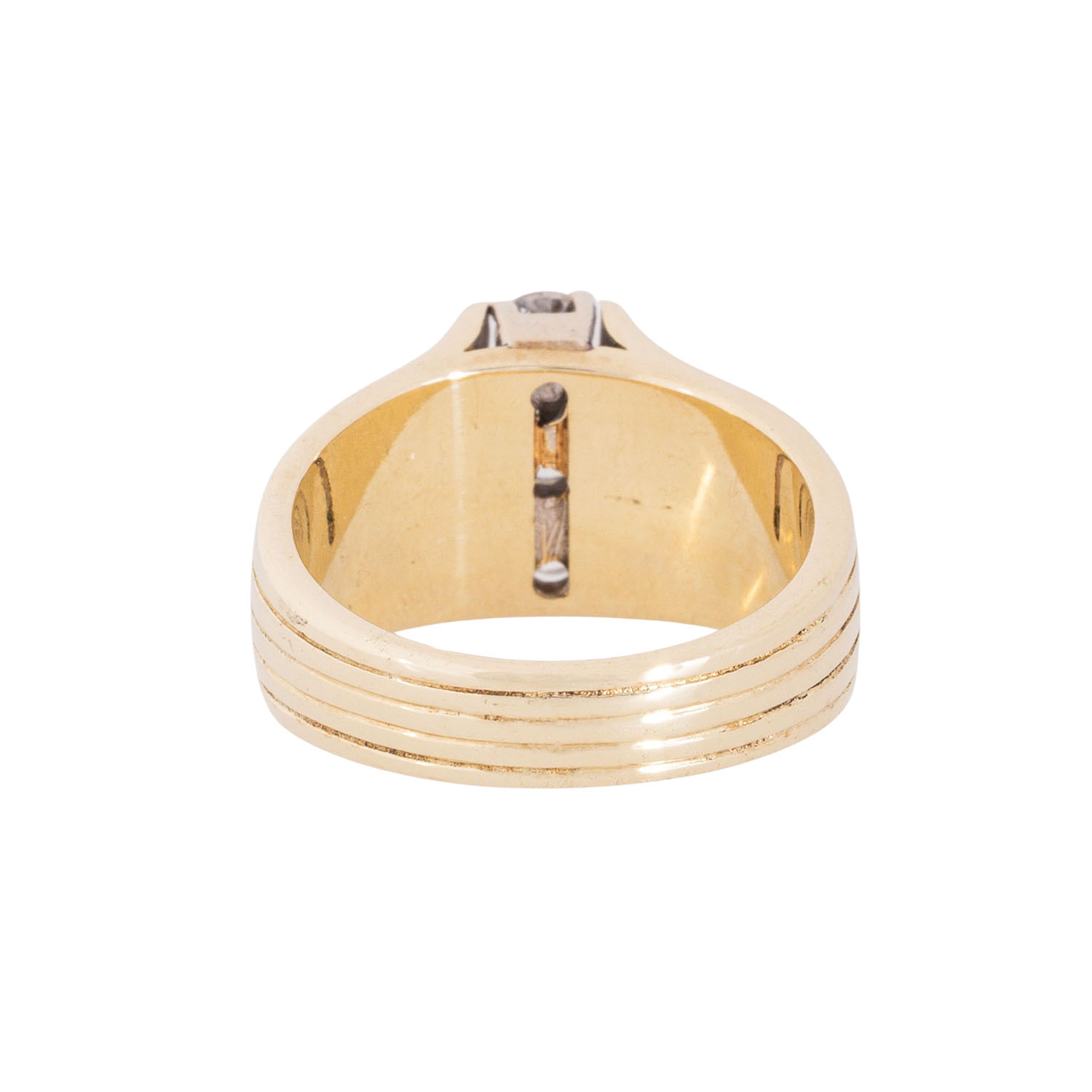 ges. ca. 0,75 ct, LGW (I-J)/VS-P, ein Stein minimal beschädigt, GG/WG 14K, 11,3 g, RW: 56, Mitte 20. Jh., leichte Tragespuren.