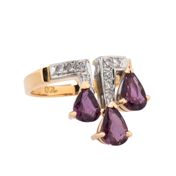 zus. ca. 0,10 ct, gute Farbe und Reinheit, GG/WG 18K, 5,6 g, RW: 50, 20./21. Jh., leichte Tragespuren.