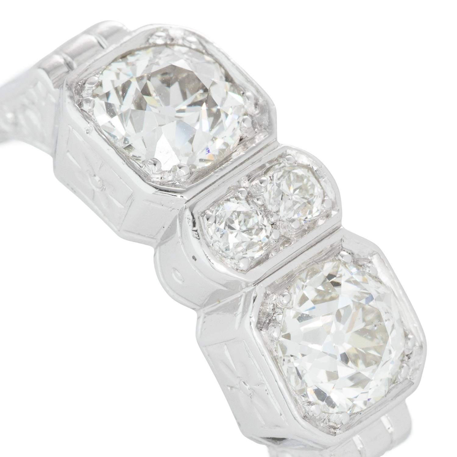davon 2 je ca. 0,60 ct, LGW-GW (J-K)/SI-P, WG 14K, 6,5 g, RW: 55, B: ca. 1,8 - 6,8 mm, 2. H. 20. JH., leichte Tragespuren, mit Herstellerpunze und Etui von 'JOSEF DITSCHEK Uhrmachermeister'.