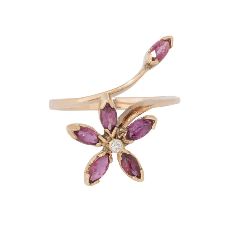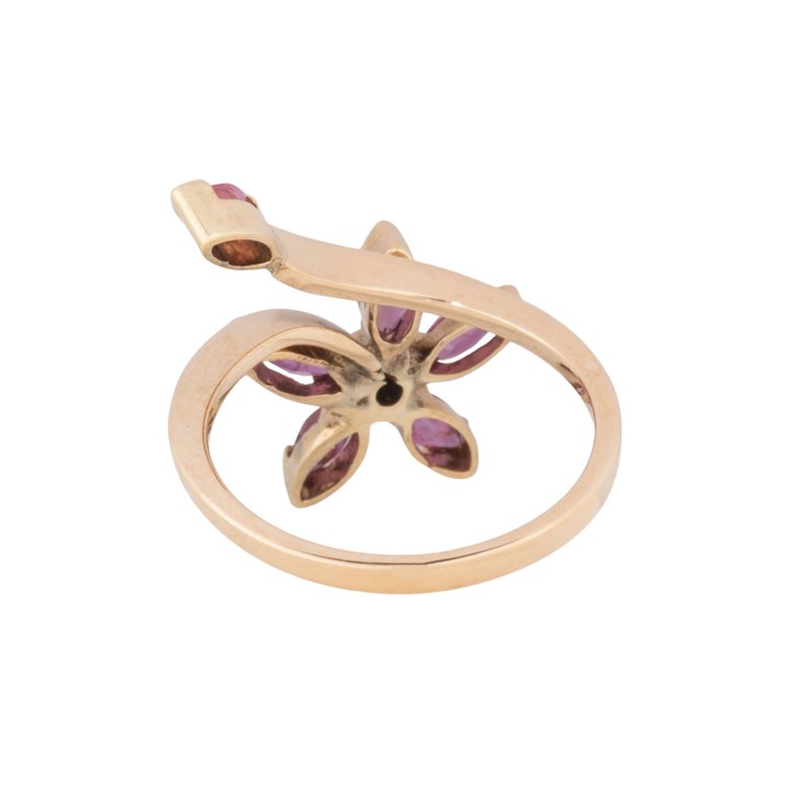 Ring mit Rosette aus Rubin umgeben von Brillanten