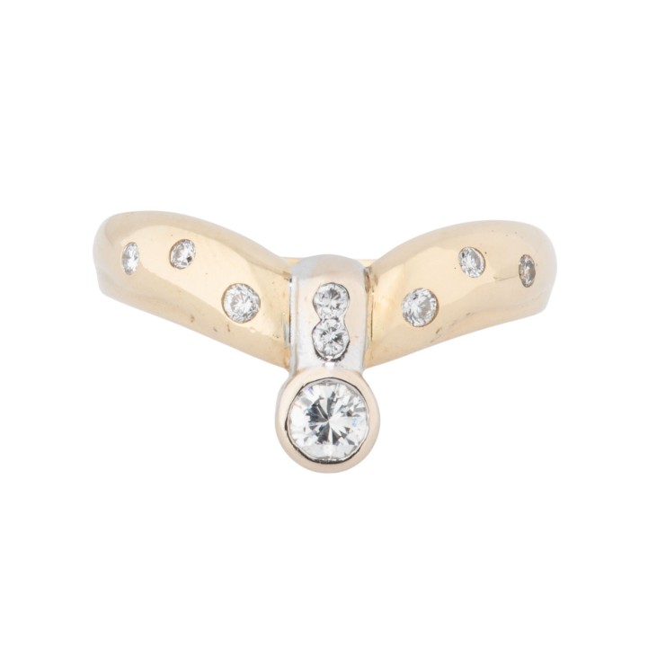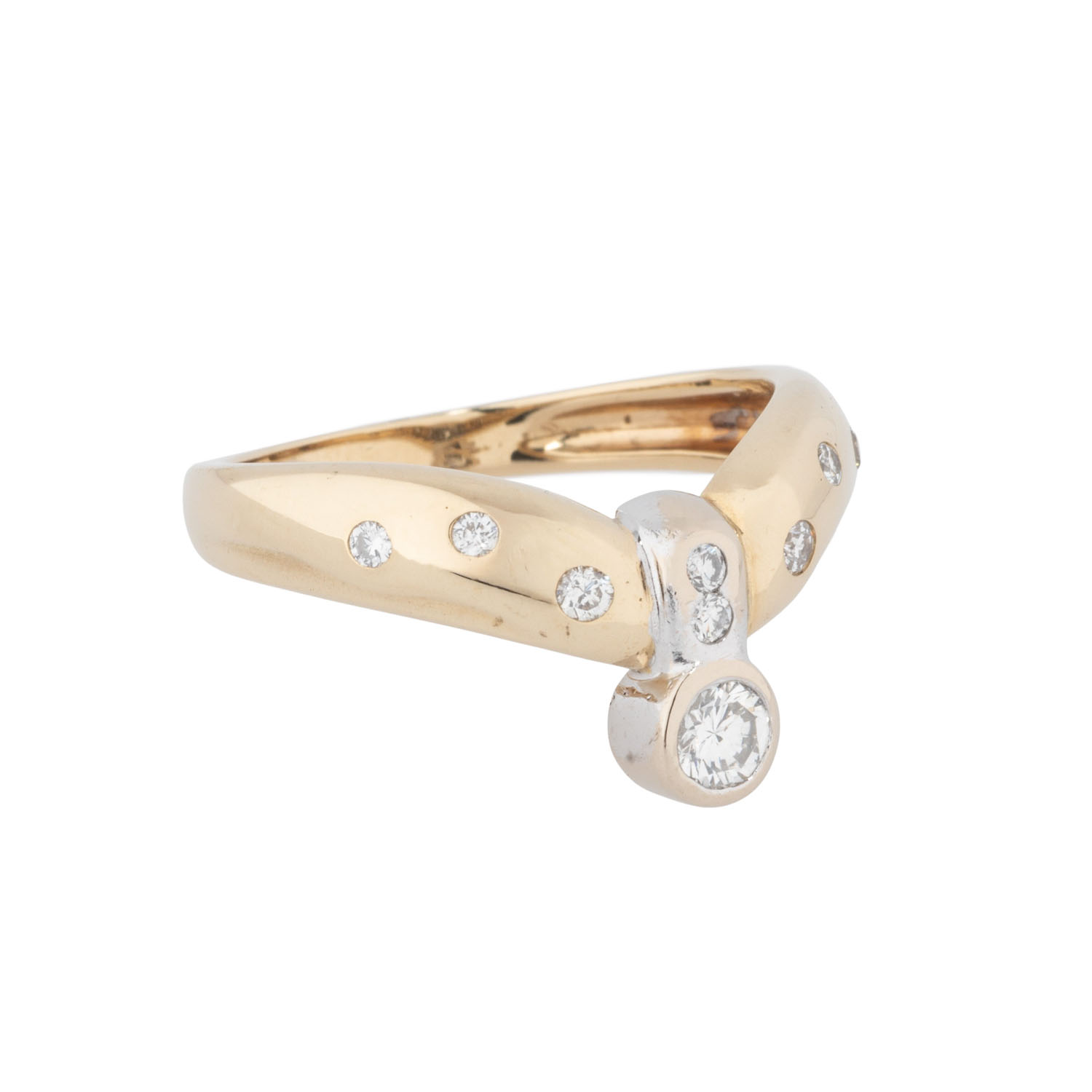 ges. ca. 0,24 ct, gute Farbe und Reinheit, GG 14K, 3,5 g, RW: 51, Ende 20. Jh., leichte Tragespuren.