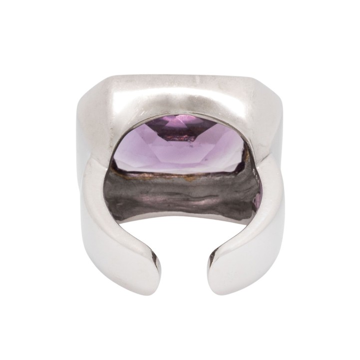 zus. ca. 0,85 ct (punziert), gute Farbe und Reinheit, WG 18K, 25,5 g, RW: 53, 20./21. Jh., leichte Tragespuren, Amethyst min. bestoßen.