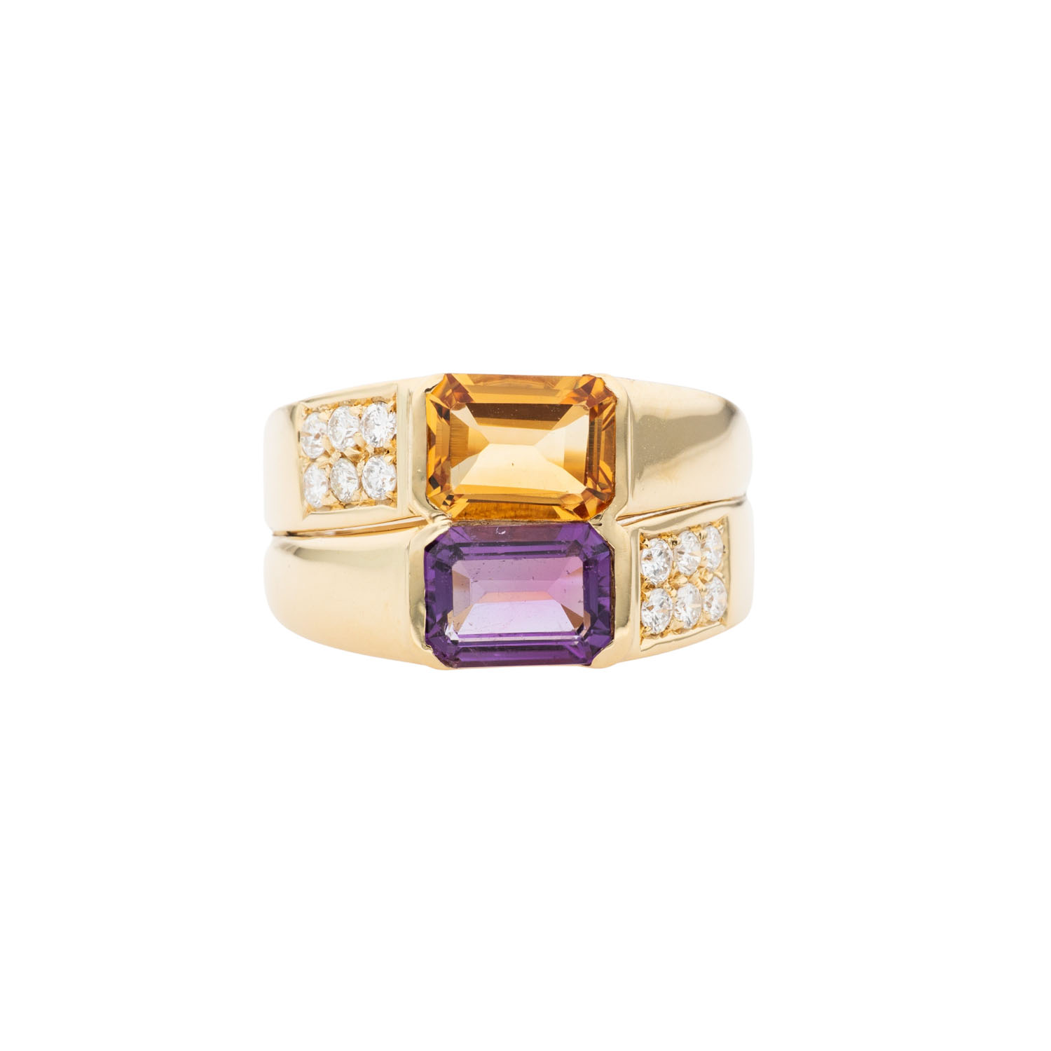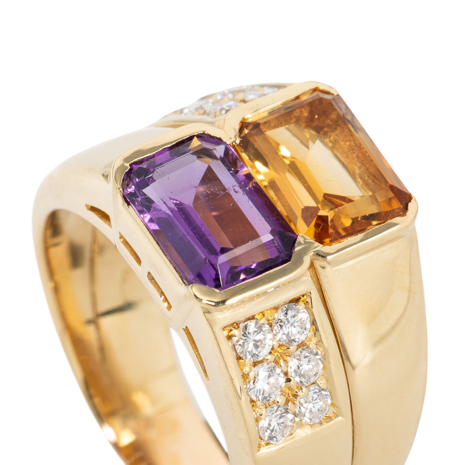 Ring mit Amethyst, Citrin und 12 Brillanten