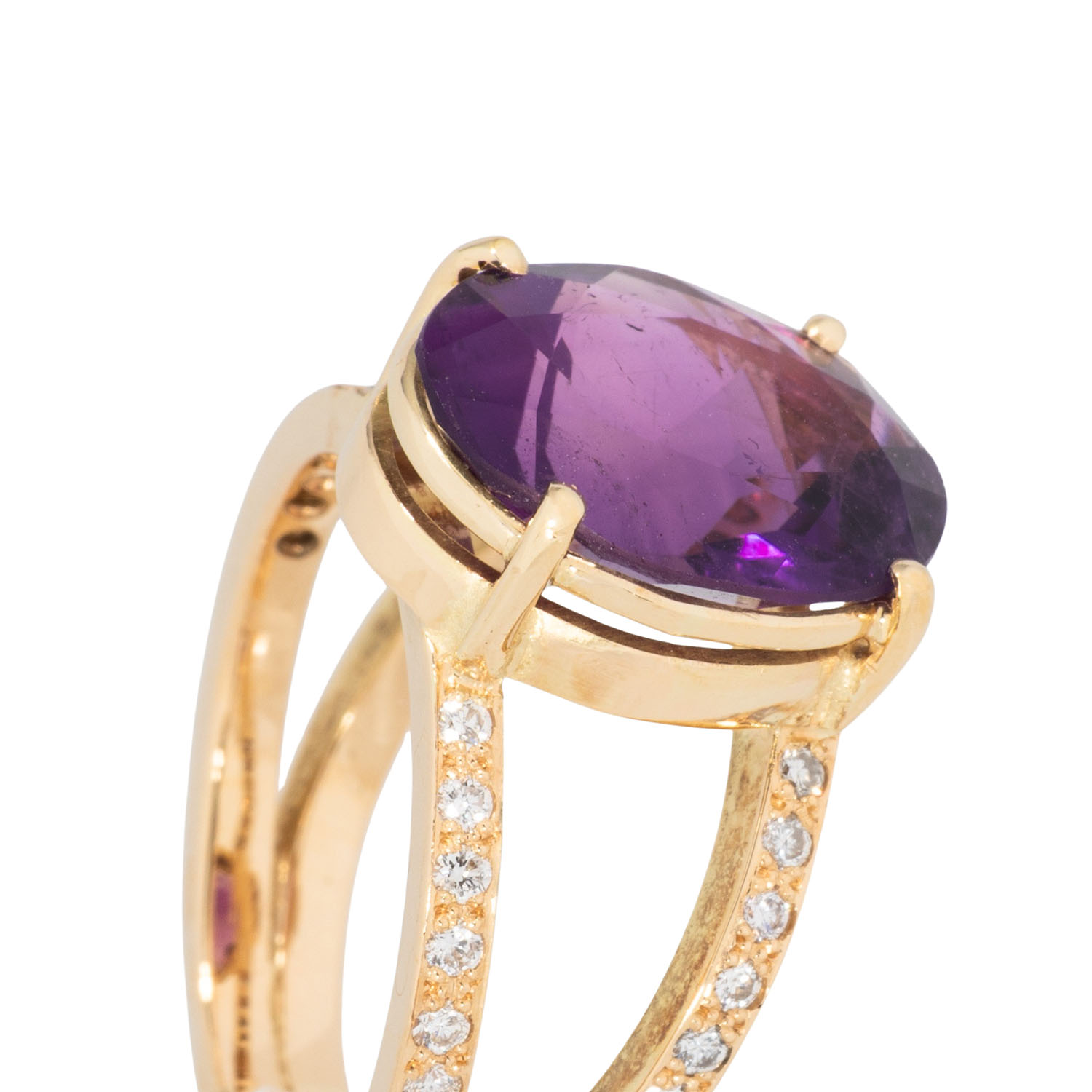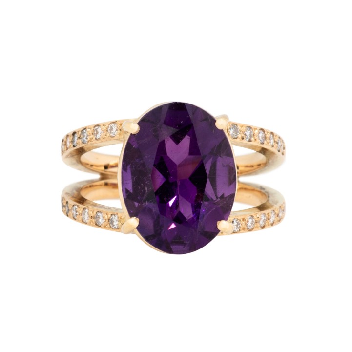 im Ovalschliff und Brillanten, zus. ca. 0,24 ct, gute Farbe und Reinheit, GG 18K, 9,5g, 20./21. Jh., Tragespuren, Amethyst leicht verkratzt, inkl. Zertifikat.