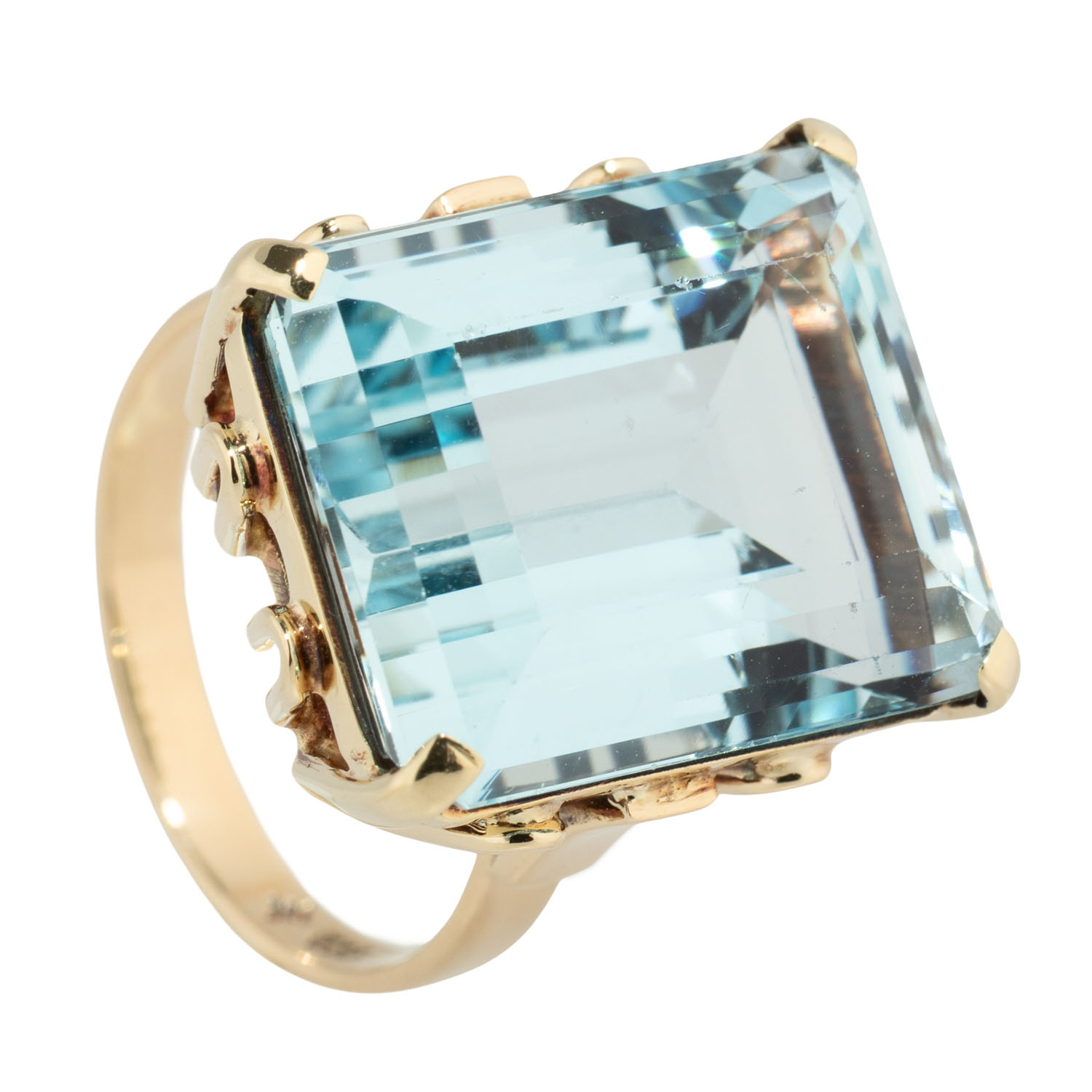 Ring mit achteckigem Aquamarin von ca. 14 ct,