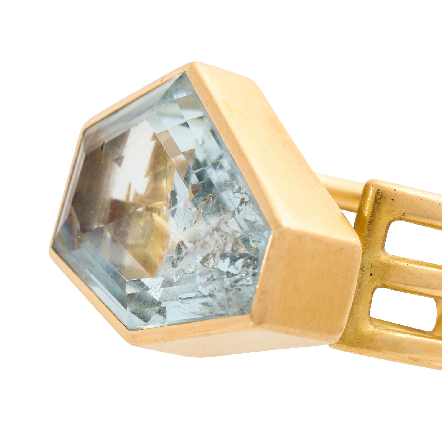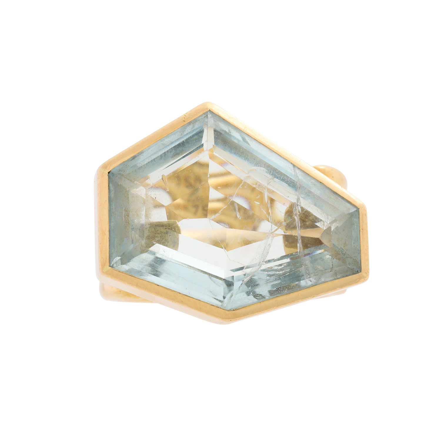 Ring mit Aquamarin in polygonalem Treppenschliff,
