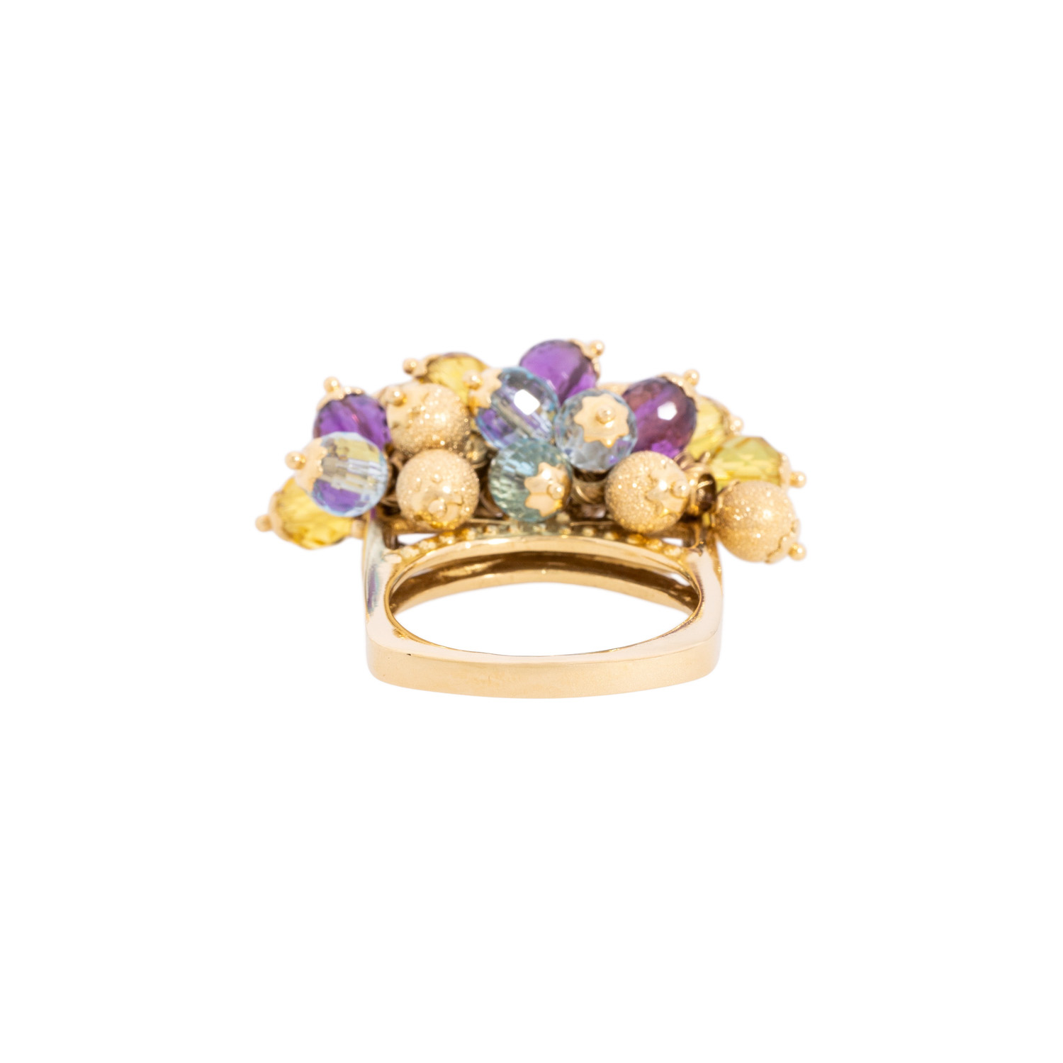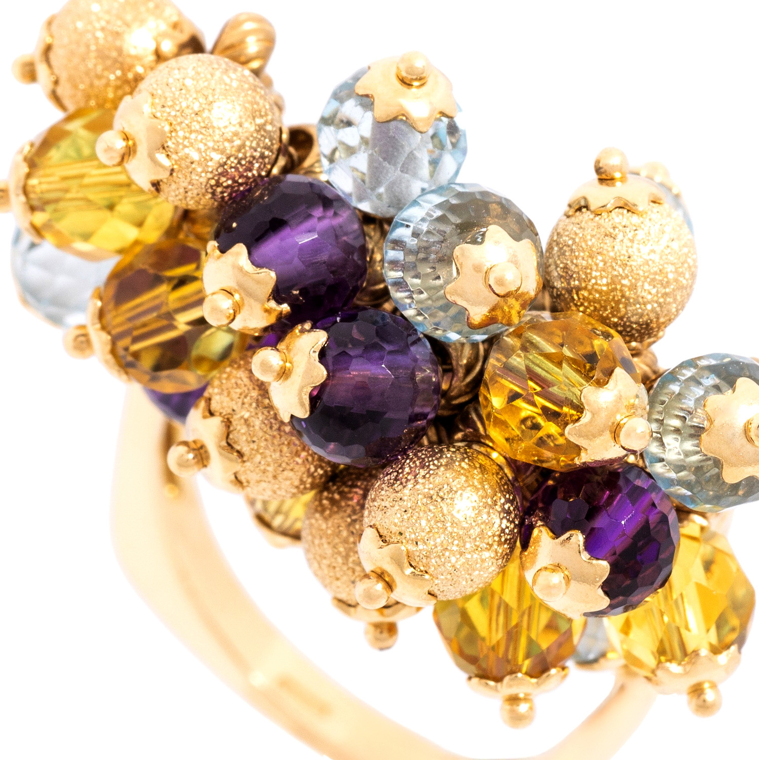 (Citrin, Amethyst, Topas) sowie mattierten Goldkugeln, GG 18K, 15,7 g, RW: 58, ca. 1950-1980er Jahre, leichte Tragespuren.