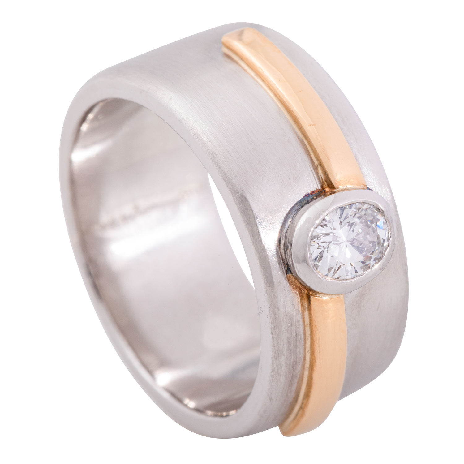 FW (G)/VS, Platin und GG 18K, 19 g, RW: 53,5, 20. Jh., guter Zustand. Handarbeit, Juwelierzertifikat von 07/1991 anbei.