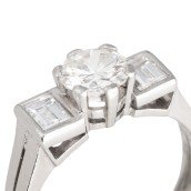 Ring mit Brillant ca. 1,1 ct flankiert von Baguette-Diamanten