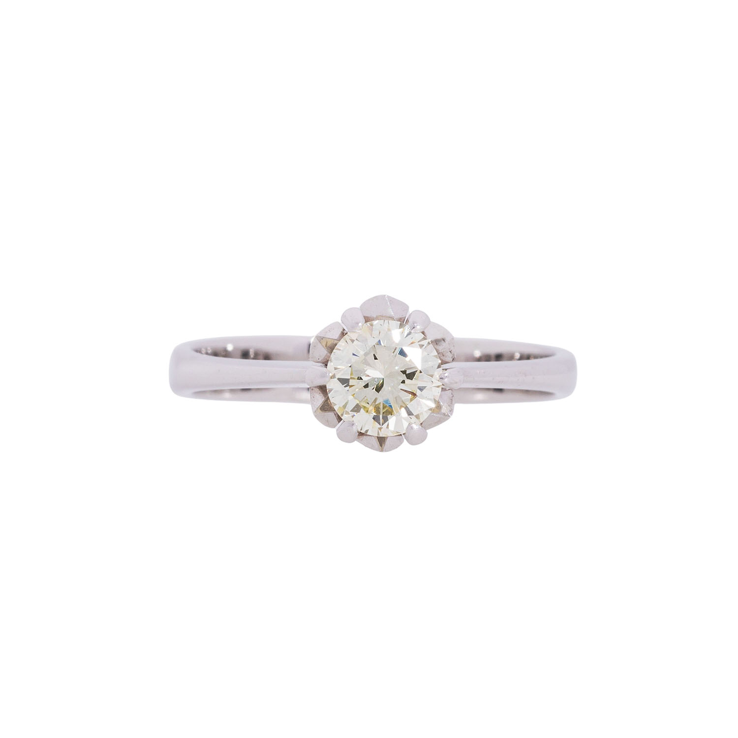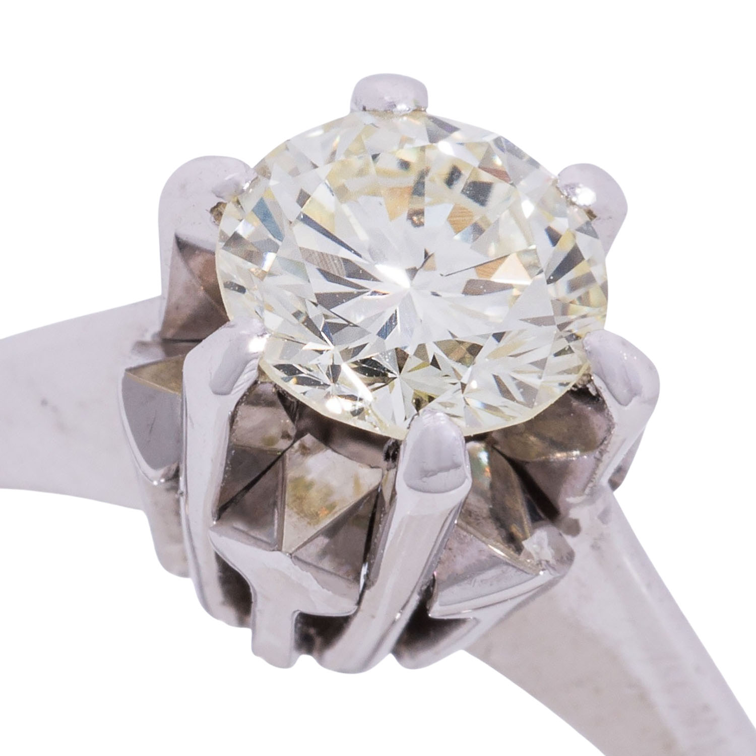 von ca. 0,60 ct, GET. (M-P)/VS-SI, WG 14K, RW: 55, 2. H. 20. Jh., leichte Tragespuren, Diamant mit kleinen Naturals.