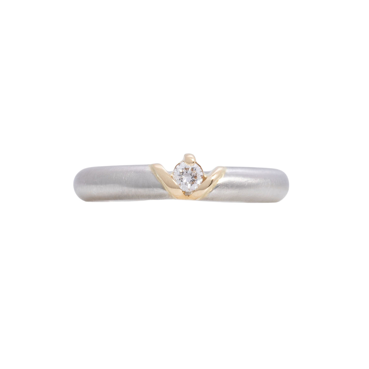 ca. 0,10 ct, WEISS (H)/P1, Pt 950/GG 18K, 3,8 g, RW: 55, Ende 20. Jh., leichte Tragespuren.