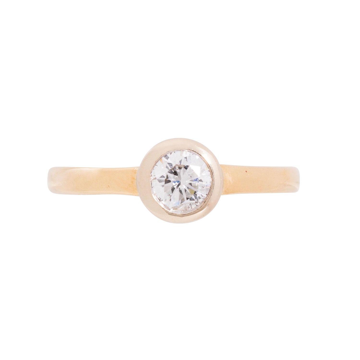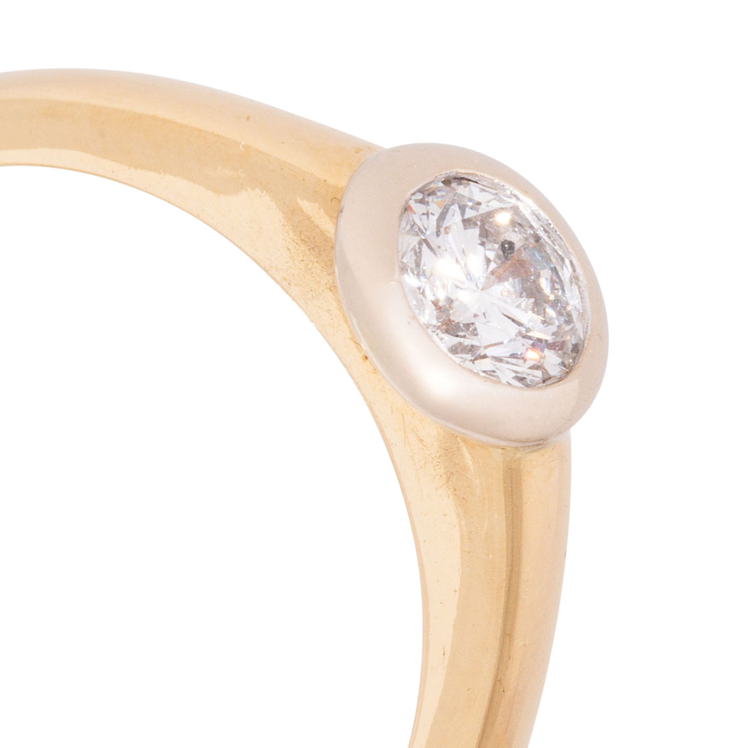 0,50 ct (grav.), ca. WEISS (H)/P, GG/WG 18K, 4,0 g, RW: 57, Ende 20. Jh., leichte Tragespuren.