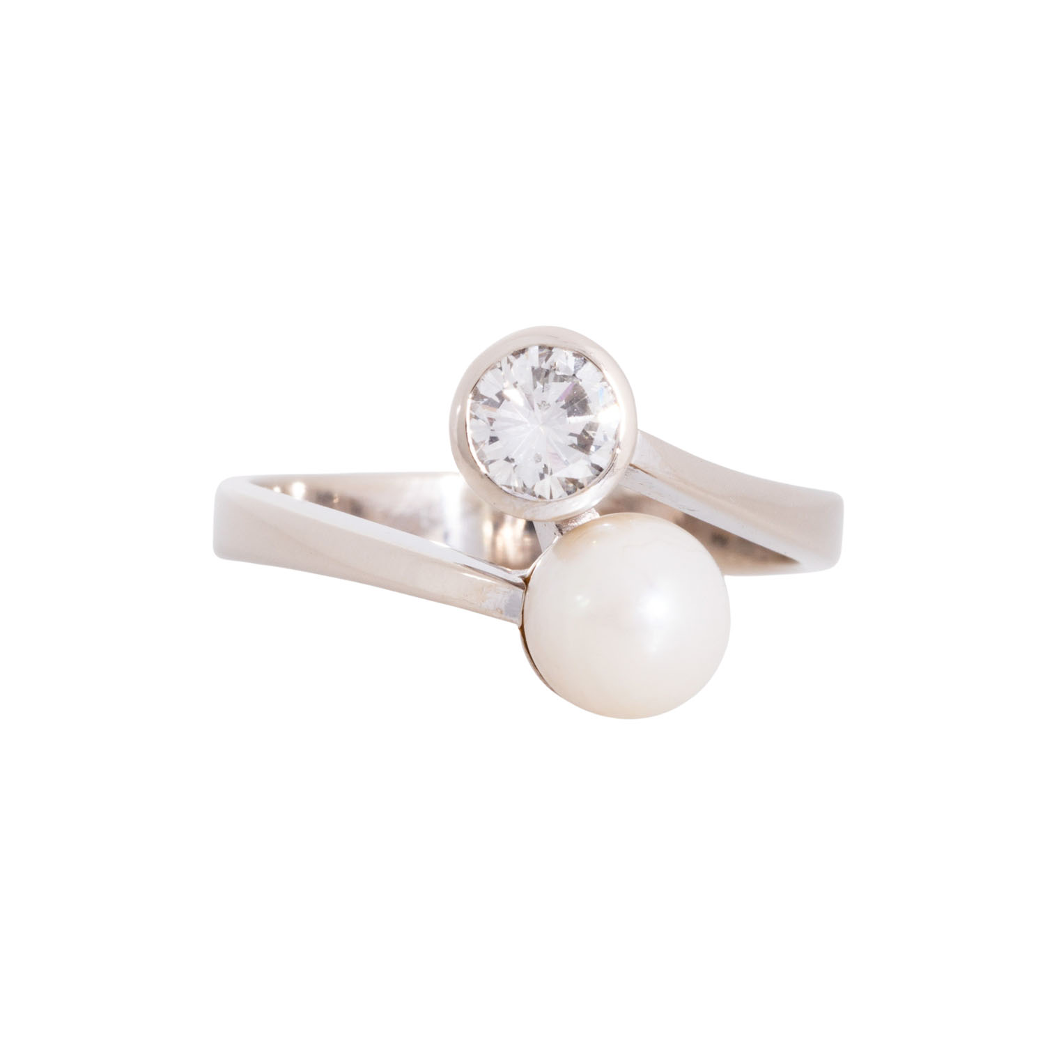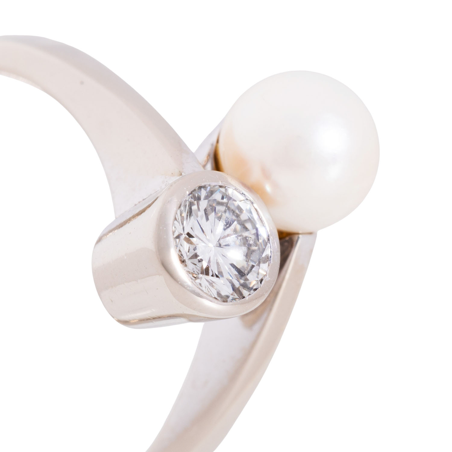 Ring mit Brillant von 0,47 ct und Zuchtperle