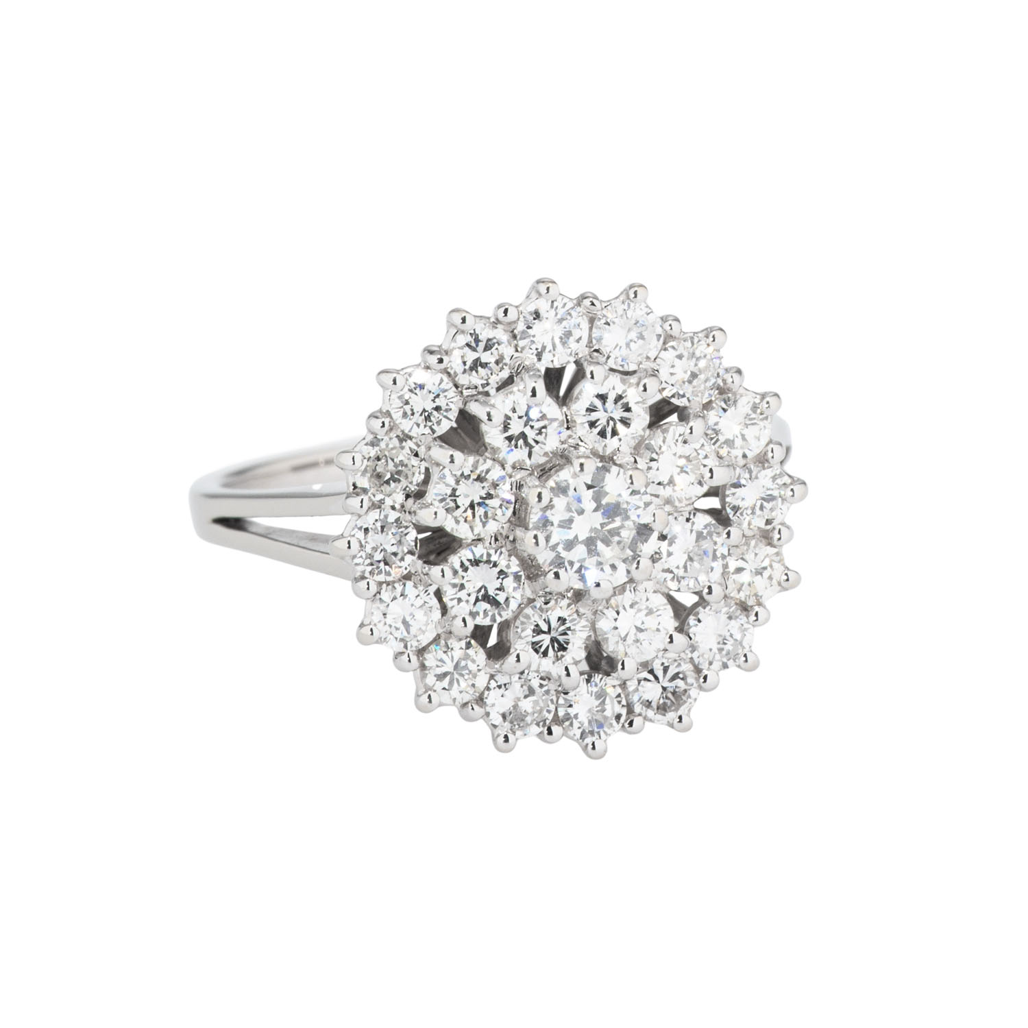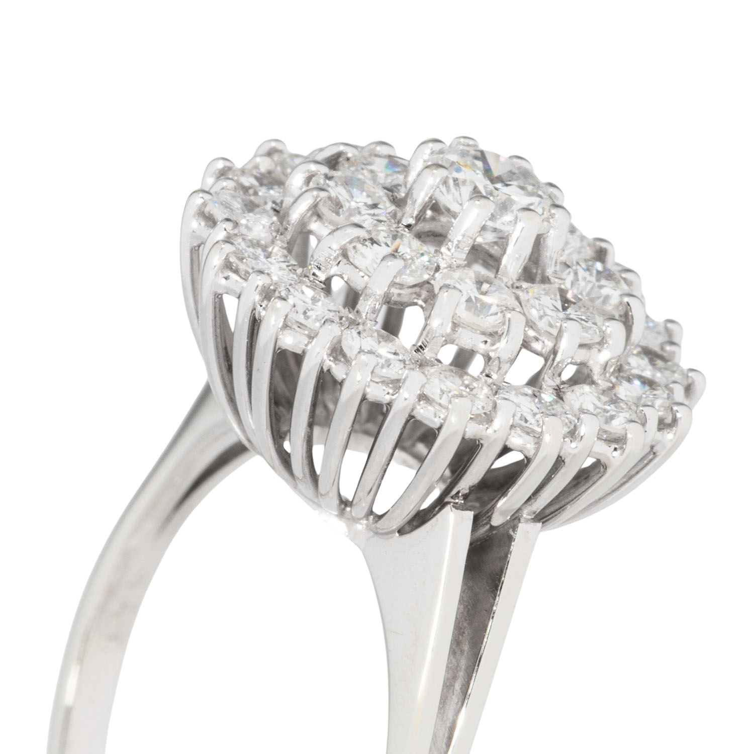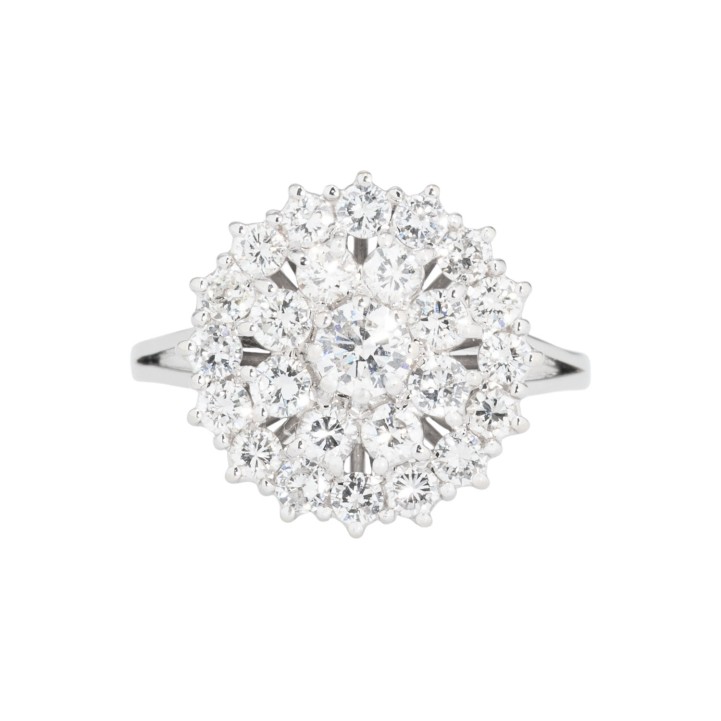 Ring with brilliant-cut diamonds, totalling ca. 1.5 ct, ca. WHITE (H)/SI, 18K WG, 5.2 g, ring size 57, 2nd half of 20th century, minimal signs of wear.