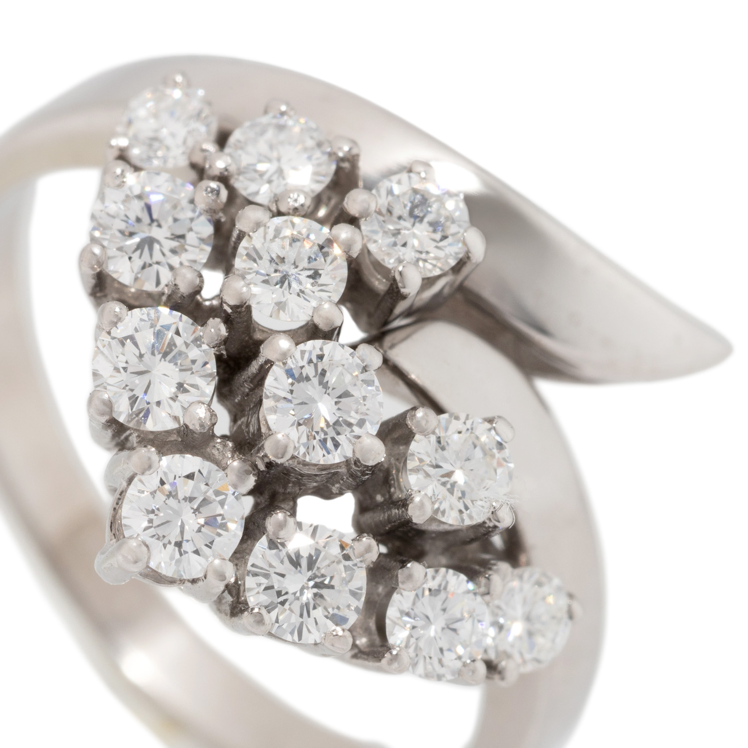 gute Farbe u. Reinheit, WG 18K, 6,5g, RW: 56, 1970er/1980er Jahre, Ringweitenänderung sichtbar, punziert 750, Meistermarke Emil Hasenfratz, Pforzheim.
