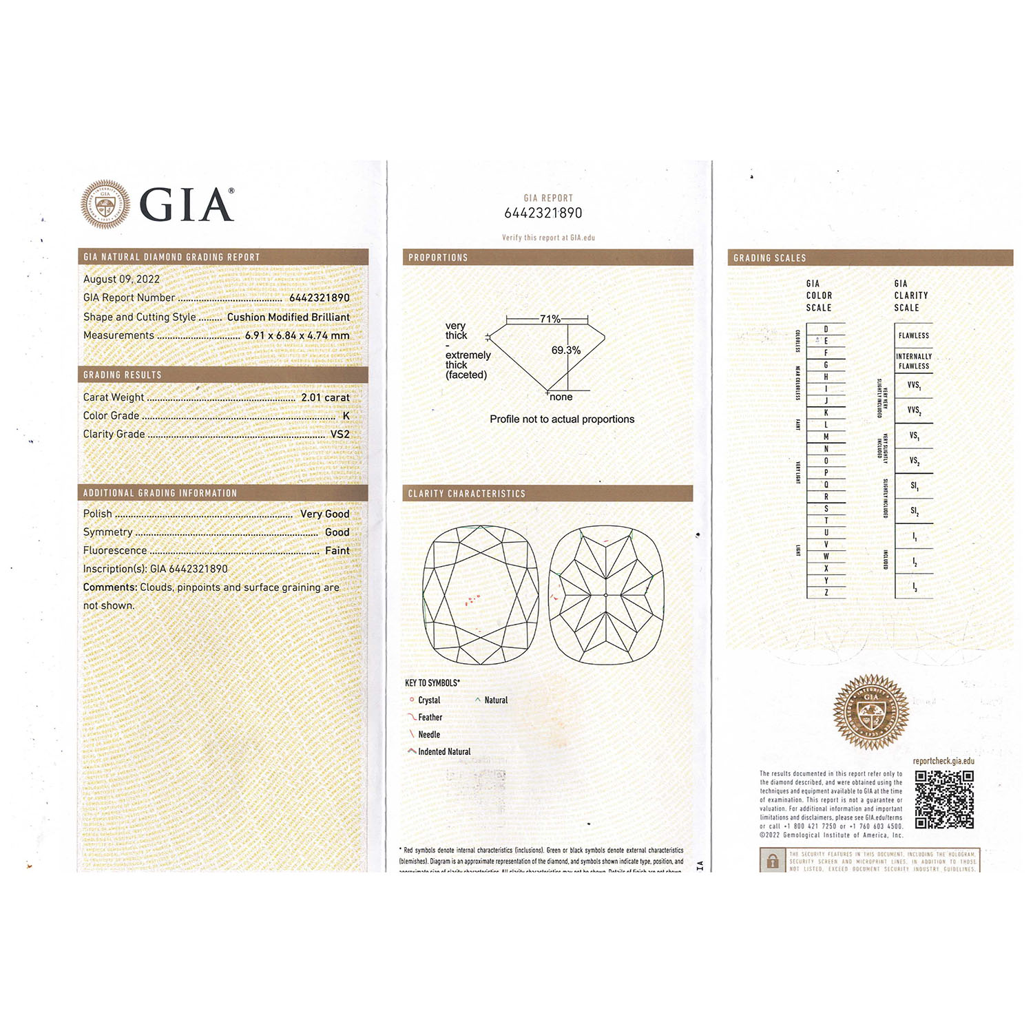 Ring mit Diamant im Kissenschliff, 2,01 ct,